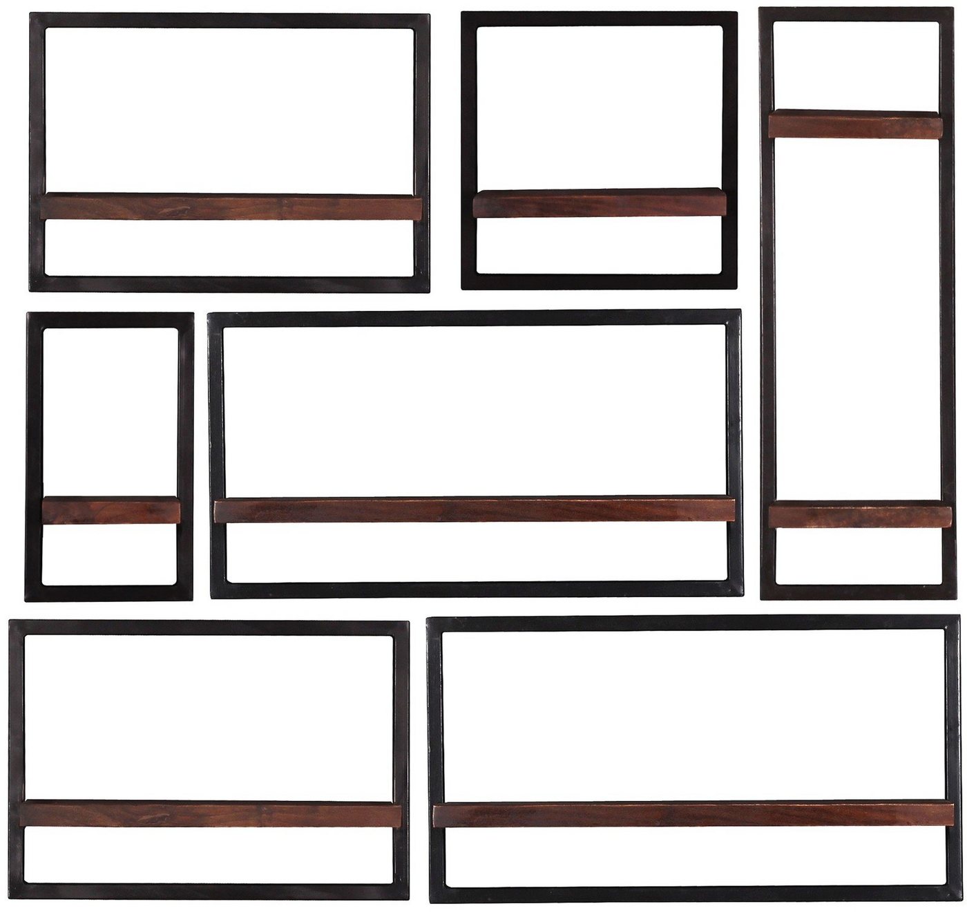 Sit Möbel Almirah Wandregal-Set, 7-teilig L &#61, 120 x B &#61, 25 x H &#61, 110 cm braun, schwarzKurzbeschreibungDieses Set aus 7 Wandregalen mit dunkel lackiertem Altholz und auf antik getrimmten Metallrahmen können Sie ganz individuell gestaltet aufhängen und somit Ihrer Kreativität freien Lauf lassen. Natürlich können Sie die Regale auch einzeln in verschiedenen Räumen verwenden, die Nutzung ist also äußerst vielseitig.. 6 niedrige Wandregale in 3 Breiten und 1 hohes Wandregal. Maße der Einzelregale: 2 x 50x25x35cm, 2 x 65x25x35 cm, 1 x 35x25x35cm, 1 x 20x25x35 cm, 1 x 25x25x75 cm Aktuelle Trends, hervorragende Einrichtungs-Ideen, schöne Möbel zu fairen Preisen. SIT-MÖBEL begann seine Erfolgsstory im Jahre 1986 und zählt heute zu einer der beliebtesten Firmen im Bereich Möbel. Das stets aktuelle und zeitgemäße Sortiment umfasst unzählige Produkte. Bestuhlungen für Restaurant, Kneipen und Bars, trendige Produkte für Ersteinrichter, Landhausmöbel in heimischen Hölzern und auch ausgefallene Spezialthemen finden Sie von SIT-MÖBEL bei uns. Freuen Sie sich auf ein breites Spektrum, immer nach dem Motto -Schöne Möbel preiswert-. Entdecken Sie eine inspirierende Raumgestaltung und eine tolle Vielfalt an massiven und teilmassiven Möbeln. Erschaffen Sie sich einen völlig neuen Einrichtungsstil mit SIT-Möbel.Zusammenfassung1x Sit Möbel Almirah Wandregal-Set, 7-teilig L &#61, 120 x B &#61, 25 x H &#61, 110 cm braun, schwarzWandregale im modernen Industrial Looktoller Materialmix aus Altholz und Altmetallvielseitiges Set aus unterschiedlichen Wandregalen, die Sie individuell arrangieren könnennachhaltige Möbelstücke aus recyceltem Altholzin allen Räumen nutzbarMaterial