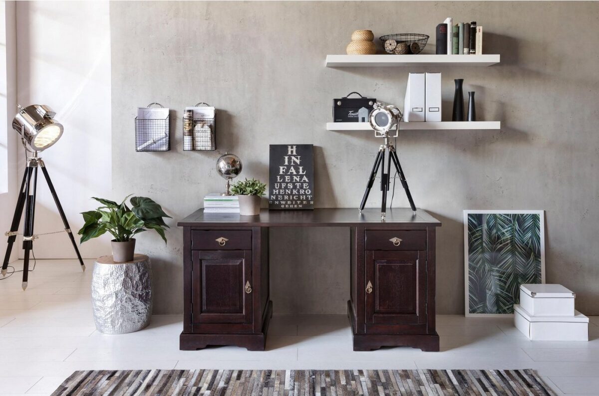 Fügt sich harmonisch in die bereits bestehende Einrichtung ein: der elegante Schreibtisch »Samba« im Lodge-Stil der Marke SIT. Der Tisch ist im klassischen Stil gehalten und zeichnet sich durch sein stilvolles Erscheinungsbild aus. Er verfügt über dekorative Metallgriffe, die das Gesamtbild gekonnt abrunden. Neben den optischen Vorzügen begeistert das Büromöbel mit praktischen Eigenschaften. Abgesehen von einer großen Schreibtischplatte bietet er viel Stauraum in Form von Schubladen. Dort lassen sich diverse Büroutensilien platzsparend verstauen. Abgerundet wird das großzügige Stauraumangebot durch Türen, hinter denen sich Platz für Ordner oder andere Bürohelfer befindet. Eine optische und gleichermaßen praktische Bereicherung ist der elegante Schreibtisch »Samba« im Lodge-Stil der Marke SIT.