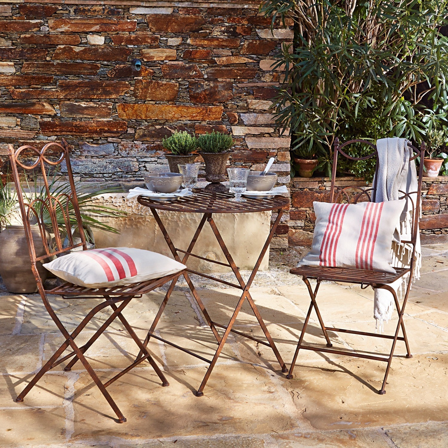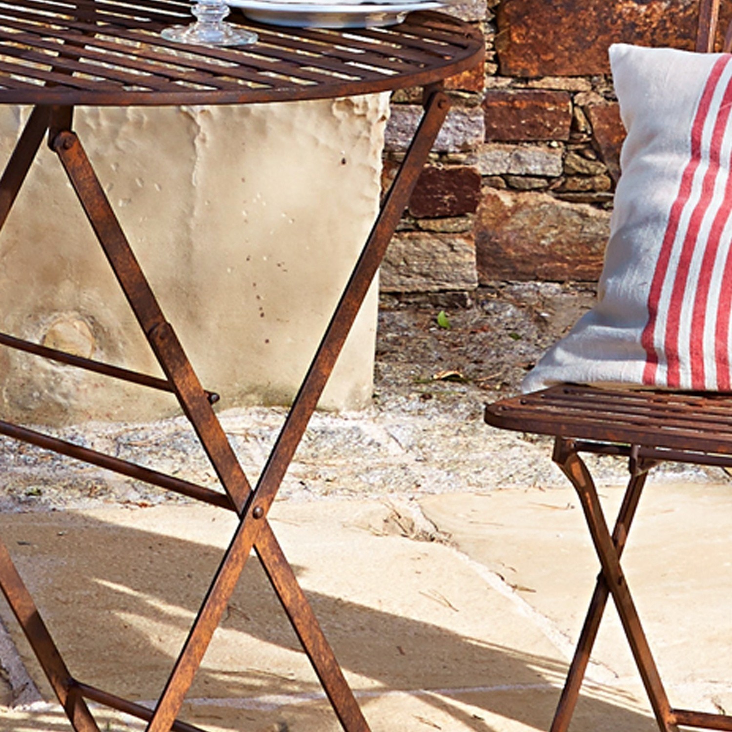 Vielseitiger Antik-Look: Die schmiedeeiserne Sitzgruppe im Jugendstil-Flair besteht aus einem Tisch und zwei Stühlen und lässt sich platzsparend zusammenklappen. […]