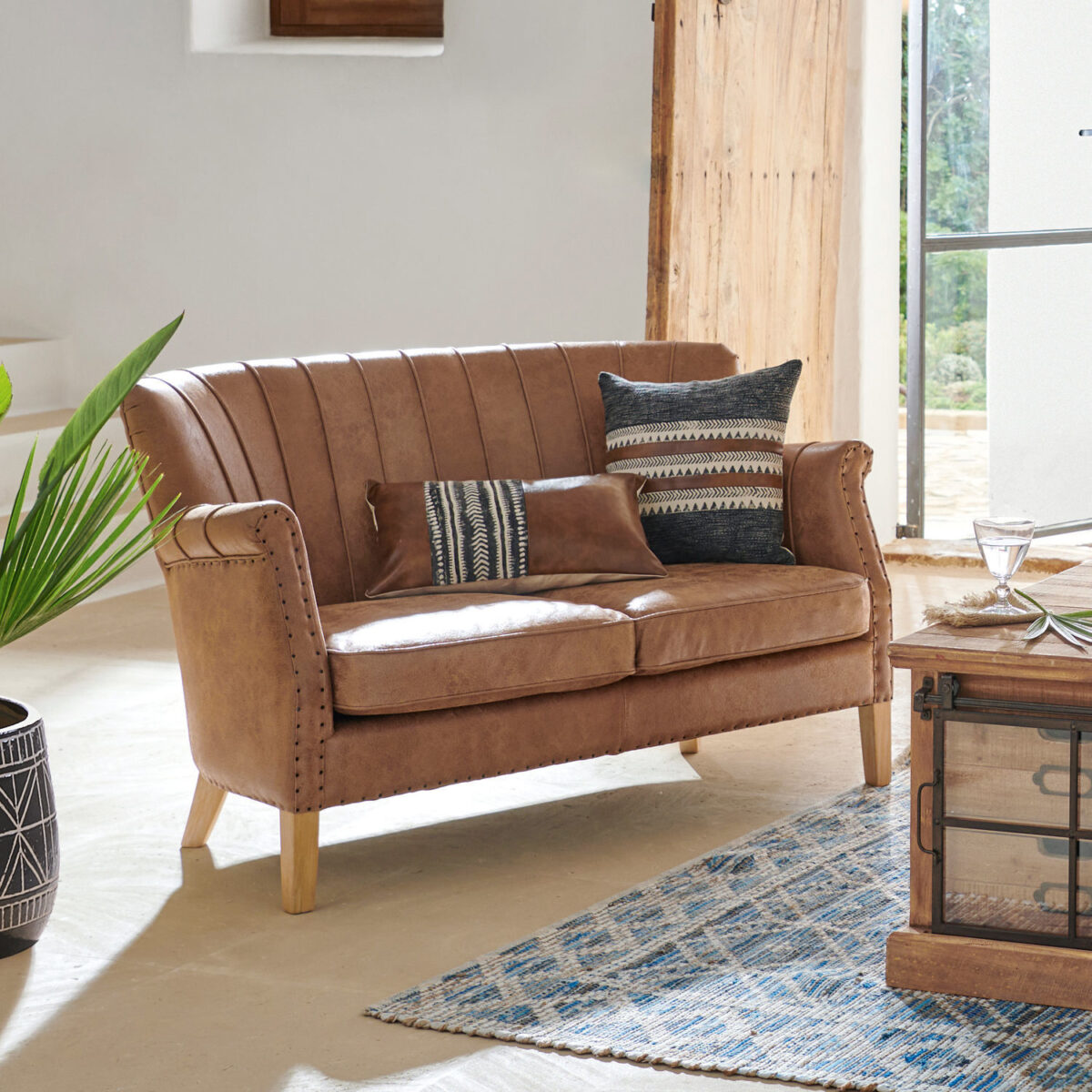 Stilvoll in seiner Schönheit und herrlich bequem in der Funktion – englisches Design hat schon viele Klassiker geschaffen und lässt sie immer wieder neu aufleben. Dazu gehört auch dieses edle Zweisitzer-Sofa, das nach hoher Sattlerkunst mit hochwertigem Leder bezogen wurde. Mit seinen hohen Armlehnen und der leicht geschwungenen Rückenlehne strahlt es eine zeitlose Eleganz aus, an der sich bestimmt auch noch die nachfolgende Generation erfreuen wird. Die dekorativen Längssteppungen zeugen dabei nicht nur von der stilsicheren Liebe zum Detail, sie verleihen dem Ledersofa auch mehr Charakter. Natürlich dürfen auch die authentischen Polsternägel mit breiten Messingköpfen nicht fehlen – ein Zitat für die alte Möbeltradition. Erfreulich ist auch der Sitzkomfort, der den mit Schaumstoff gepolsterten Sitzkissen zu verdanken ist. Die Holzbeine stehen in einem harmonischen Kontrast zu dem glatten Leder und vollenden den starken Auftritt. Ein nobler Blickfang mit dem Charme aristokratischer Vergangenheit – in den englischen Landhaus-Stil fügt sich das Polstermöbel wie von selbst ein, in modernem Ambiente setzt es einen reizvollen Kontrapunkt.