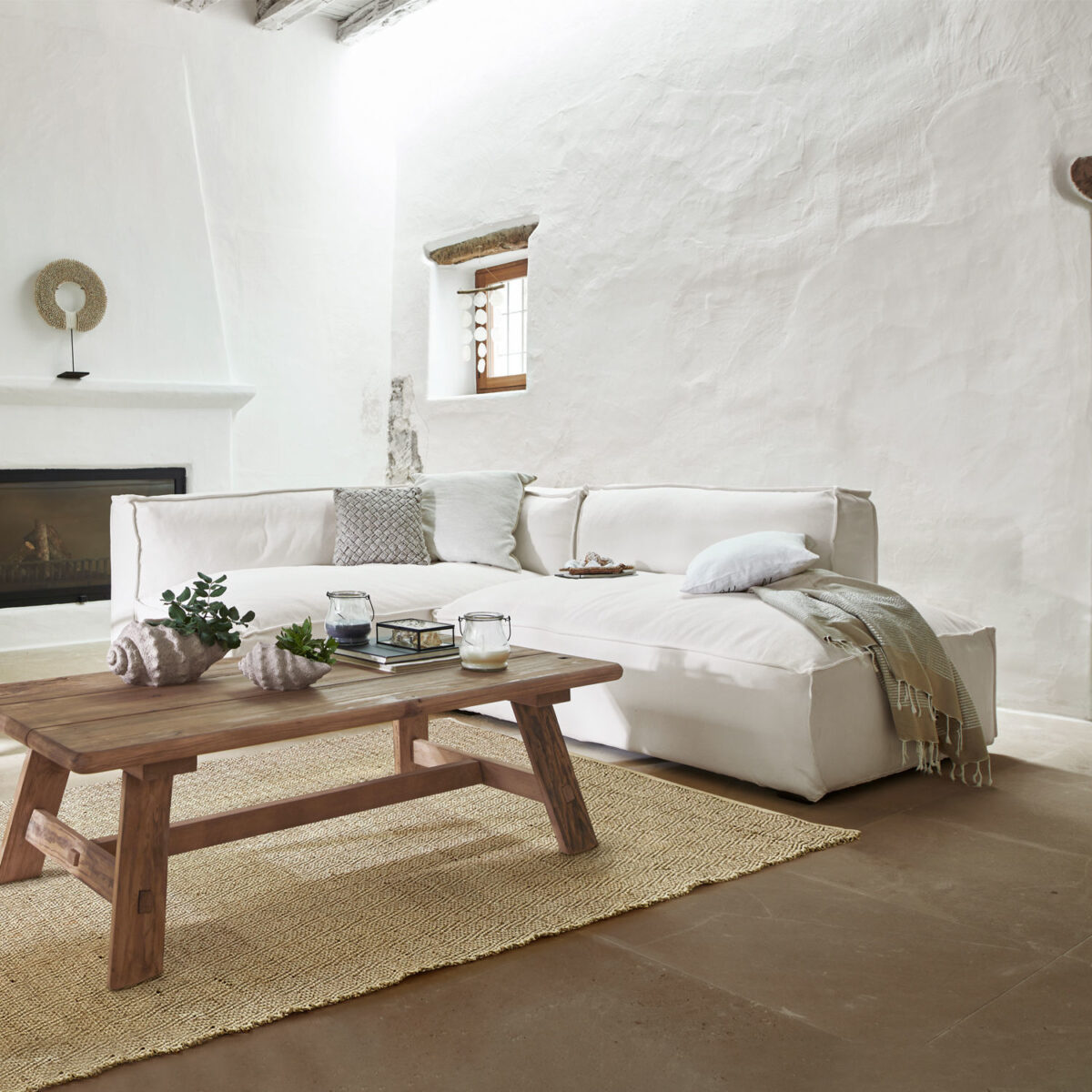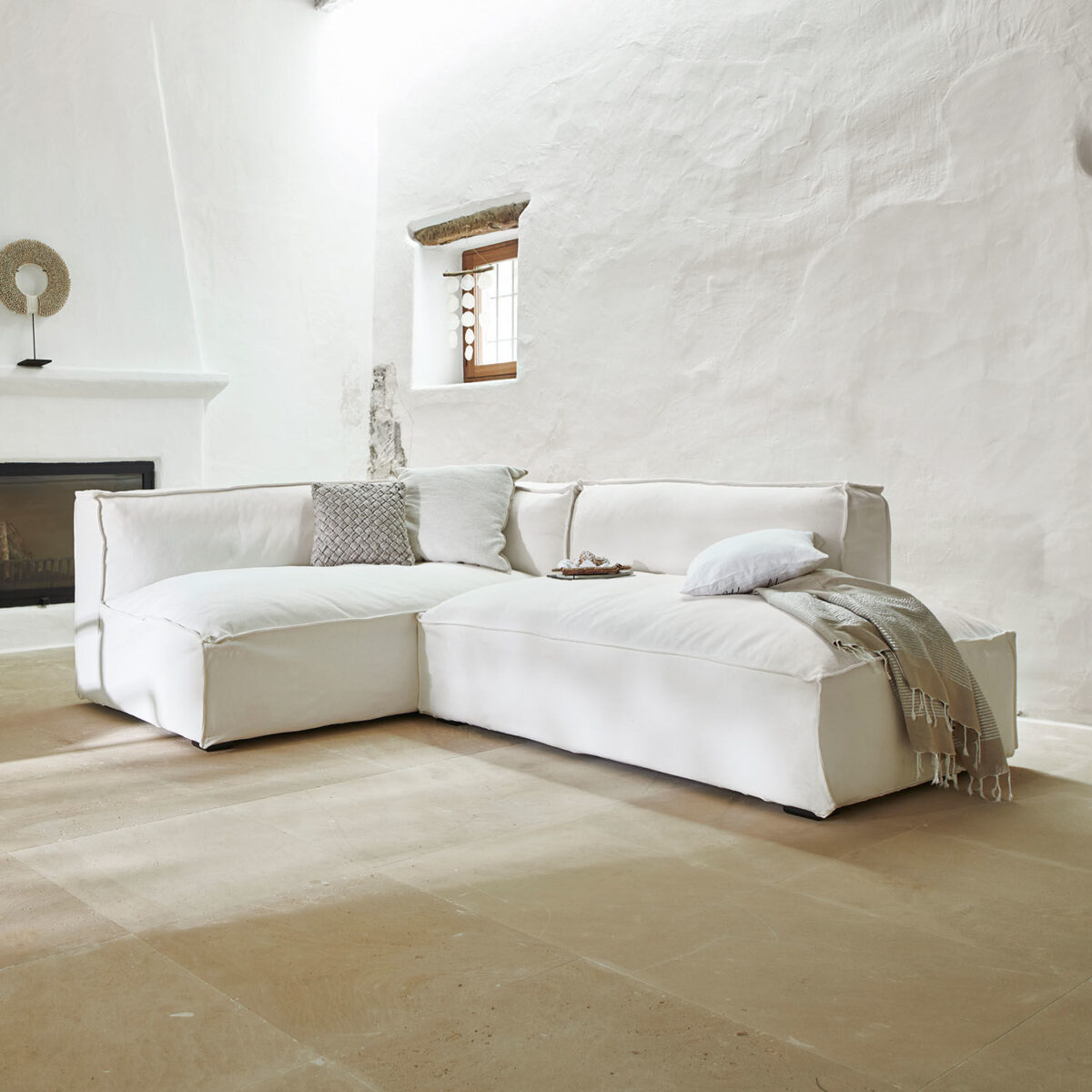 Was ist neben Möbeln aus edlen Hölzern und erlesenen Accessoires ein essentieller Bestandteil eines Wohnraums, der im modernen Landhaus-Stil möbliert wurde? Natürlich ein Sofa, das der ersehnte Ruhepol nach einem langen anstrengenden Arbeitstag ist. Ein Sofa, auf dem man nicht nur den Feierabend, sondern auch gemütliche Sonntagnachmittage verbringt, nur mit einem guten Buch und einer Tasse Tee. Ein Sofa, das ein beliebter Treffpunkt für die ganze Familie ist und auf dem auch Ihre Freunde gerne stundenlang verweilen. Kurz: Ein Sofa wie dieses hier. Das Interessante an diesem Modell: Es beweist auf charmante Art und Weise, dass Landhaus-Möbel nicht immer üppig verziert sein müssen. diesem Ecksofa genügt eine gerade Linienführung in Zusammenspiel mit edlen Naturmaterialien, um im Handumdrehen die Entspannungsinsel Nr. 1 in Ihrem Zuhause zu werden. Dafür leistet allerdings auch die integrierte Recamiere Ihren nicht unwesentlichen Beitrag, denn auf ihr können Sie wunderbar entspannend die Füße hochlegen. Komplettiert wird die exzellente Ausstattung dieses Sofas durch den stilechten Hussenbezug aus hautfreundlicher reiner Baumwolle und die Kissenfüllung mit echten Entenfedern. Für das komfortable Sitzerlebnis sorgen die klassischen Sprungfedern zusammen mit einer hochwertigen Schaumstoffpolsterung. Praktisches Extra: Der Hussenbezug, der durch die markanten Keder perfekt in Form gehalten wird, kann mit Hilfe der Klettverschlüsse abgenommen werden.