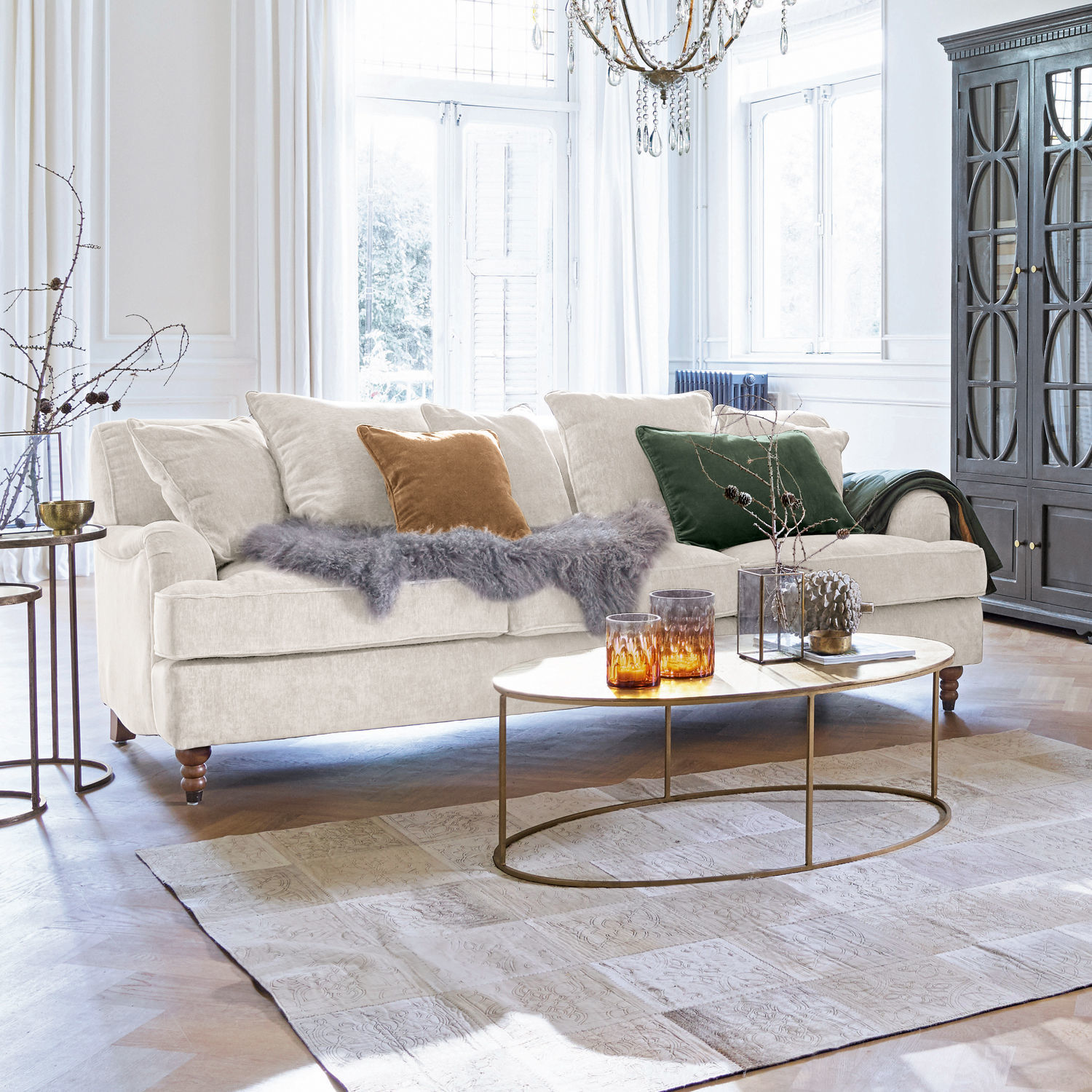Couch, Kanapee, Diwan, Sofa – es gibt viele Namen für dieses Möbelstück, das sich seit Jahrhunderten großer Beliebtheit erfreut und sich im Laufe der Zeit in den verschiedensten Stilrichtungen präsentierte. Für alle, die ebenso viel Wert auf modernes Design wie auf erstklassigen Sitzkomfort legen, wurde dieses Sofa-Modell entworfen. Die dezente Farbgebung harmoniert vollendet mit der geradlinig schlichten Linienführung, die nur von weichen Kissen charmant aufgelockert wird, während die kunstvoll gedrechselten Füße eine liebevolle Reminiszenz an die historischen Vorbilder sind. Kurz: Ein Sofa, das seine Verwandtschaft zu den berühmten Design-Klassikern der italienischen Schule nicht verleugnen kann, für die Optik, Funktionalität und traditionelle, handwerkliche Fertigung immer Hand in Hand gehen. Deshalb wird Sie dieses Sofa nicht nur mit elegantem Design, sondern dank der weichen Schaumstoffpolsterung auch mit luxuriöser Bequemlichkeit verwöhnen. Ganz gleich, ob Sie gerne aufrecht sitzen, sich lieber bequem hineinlümmeln und die Füße hochlegen oder gemütliche Kuschelstunden zu zweit genießen. Mit seiner stattlichen Größe von ca. 190 cm macht sich das Sofa sogar extra lang, sodass Sie sich auch mal ganz auf ihm ausstrecken und ein kleines Nickerchen machen können. Denn auch das gehört zum modernen La Dolce Vita! Für die Alltagstauglichkeit sorgt der Bezugsstoff aus edel schimmerndem, strapazierfähigem Samt, der solide Rahmen ist aus Kiefernholz. Die Kissen sind mit einem Reißverschluss ausgestattet, so dass Sie bei Bedarf den Bezug abnehmen können.