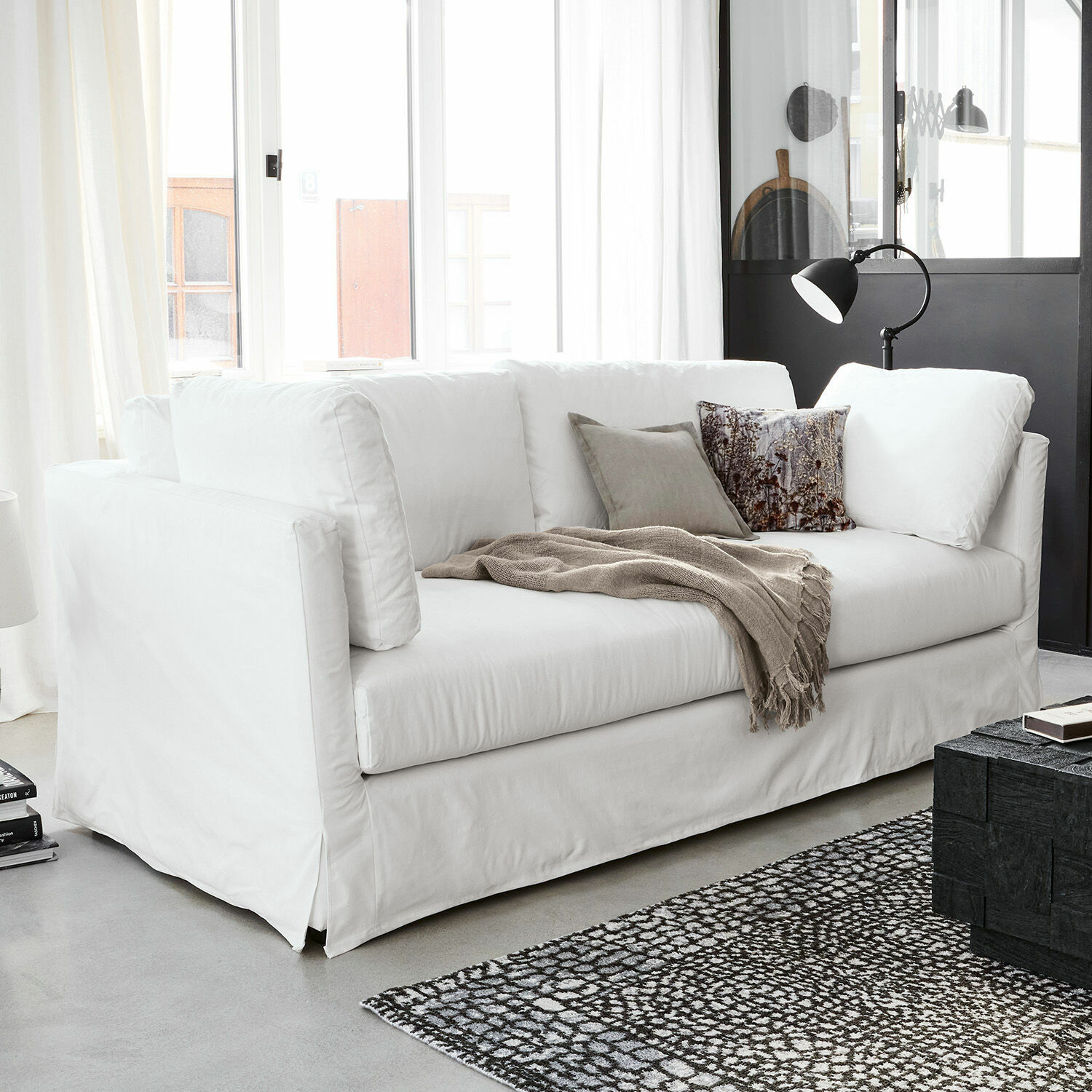 Groß und einladend steht das Sofa im Wohnraum und am liebsten würden Sie jede freie Minute auf ihm verbringen – mal mit Ihrer Lieblingszeitschrift gemütlich in eine Ecke gekuschelt, mal lang ausgestreckt für einen kleinen Power Nap und mal in geselliger Runde mit der Familie oder guten Freunden. Dieses Sofa wird ab sofort eine herausragende Rolle in Ihrem Leben spielen und zugleich das stilprägende Element in Ihrem Wohn-Ambiente sein. Denn mit seinem schlicht eleganten Design und der nur ganz dezent angedeuteten Hussen-Optik wirkt es elegant und gemütlich zugleich. Für den Sitzkomfort sorgt neben der hochwertigen Schaumstoff-Polsterung auch der Bezug aus der Naturfaser Baumwolle, während das solide gearbeitete Gestell aus Kiefernholz die ausgezeichnete Stabilität, Belastbarkeit und Langlebigkeit garantiert. Und da Sie bei Bedarf den Bezug der Rücken-, Sitz- und Kuschelkissen abnehmen und waschen können, ist das Sofa bestens ausgerüstet, um Ihnen viele entspannte Stunden zu schenken. Styling-Tipp: Je nach Lust und Laune können Sie den Look des Sofas variieren, indem Sie es mal mit dezenten, mal mit farbenfrohen Zierkissen dekorieren.