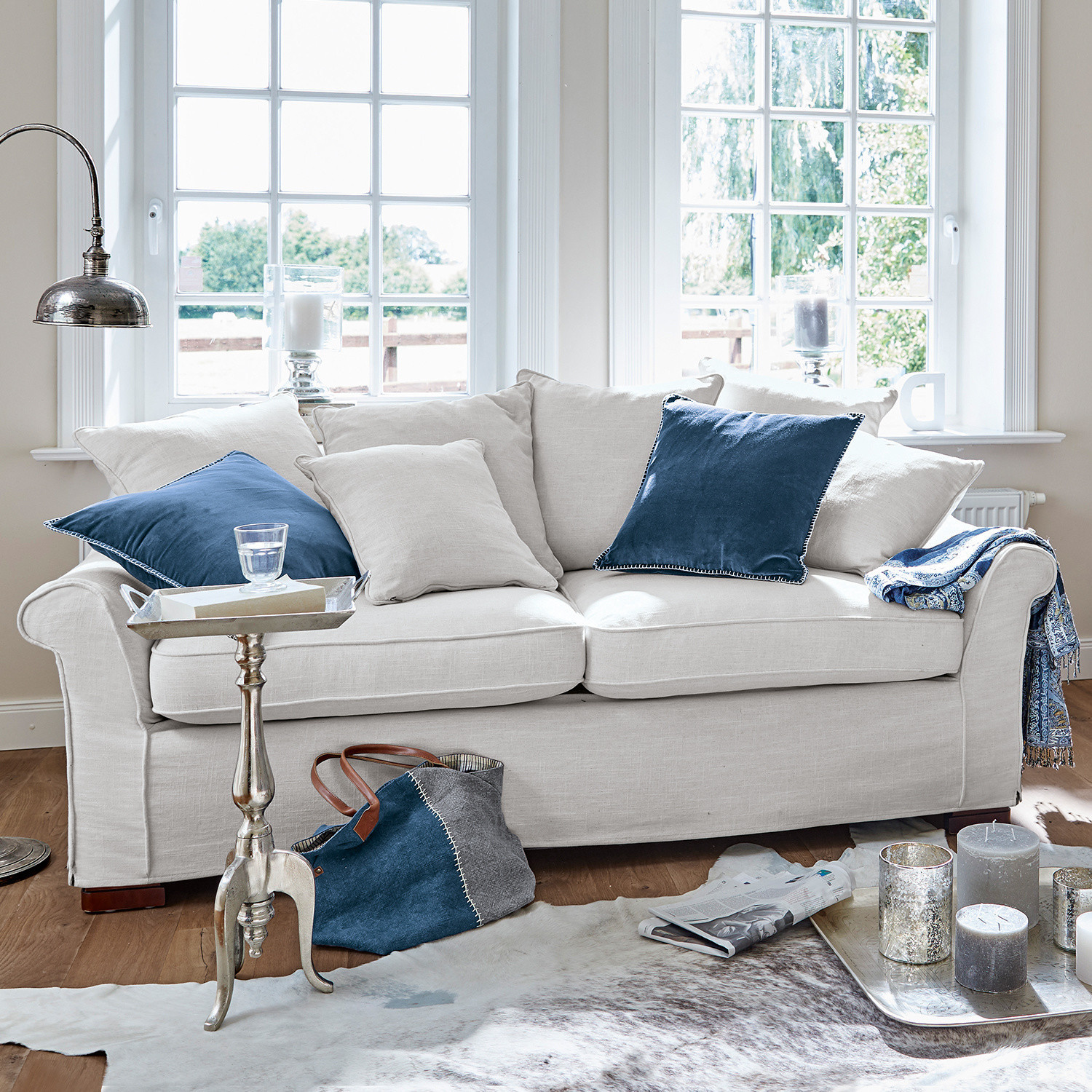 Was wäre das Leben ohne eine bequeme Basis? Nur halb so gemütlich! Wie gut, dass dieses cremefarbene Sofa nicht nur auf seine klassisch-schöne Optik setzt, sondern auch in Sachen Sitzkomfort bestens ausgestattet ist: Unter dem strapazierfähigen Bezug verbergen sich ein hochwertiges Holzgestell sowie eine formstabile Polsterung aus Schaumstoff und Entenfedern, die auch anspruchsvolle Lounge-Liebhaber glücklich machen. Zahlreiche Kissen geben Ihnen die nötige Rückendeckung, sodass Sie sich entspannt zurücklehnen und die Füße hochlegen können. Unser Tipp: Je nach Saison können Sie den dezenten Zweisitzer mit bunten oder gemusterten Kissen auffrischen.