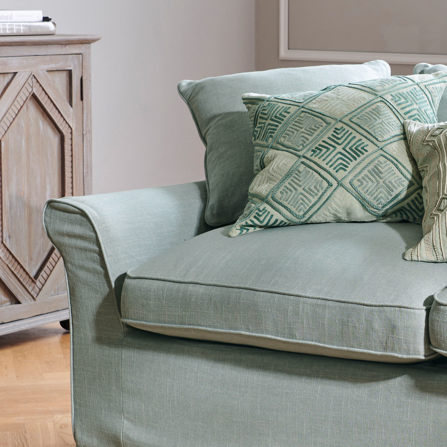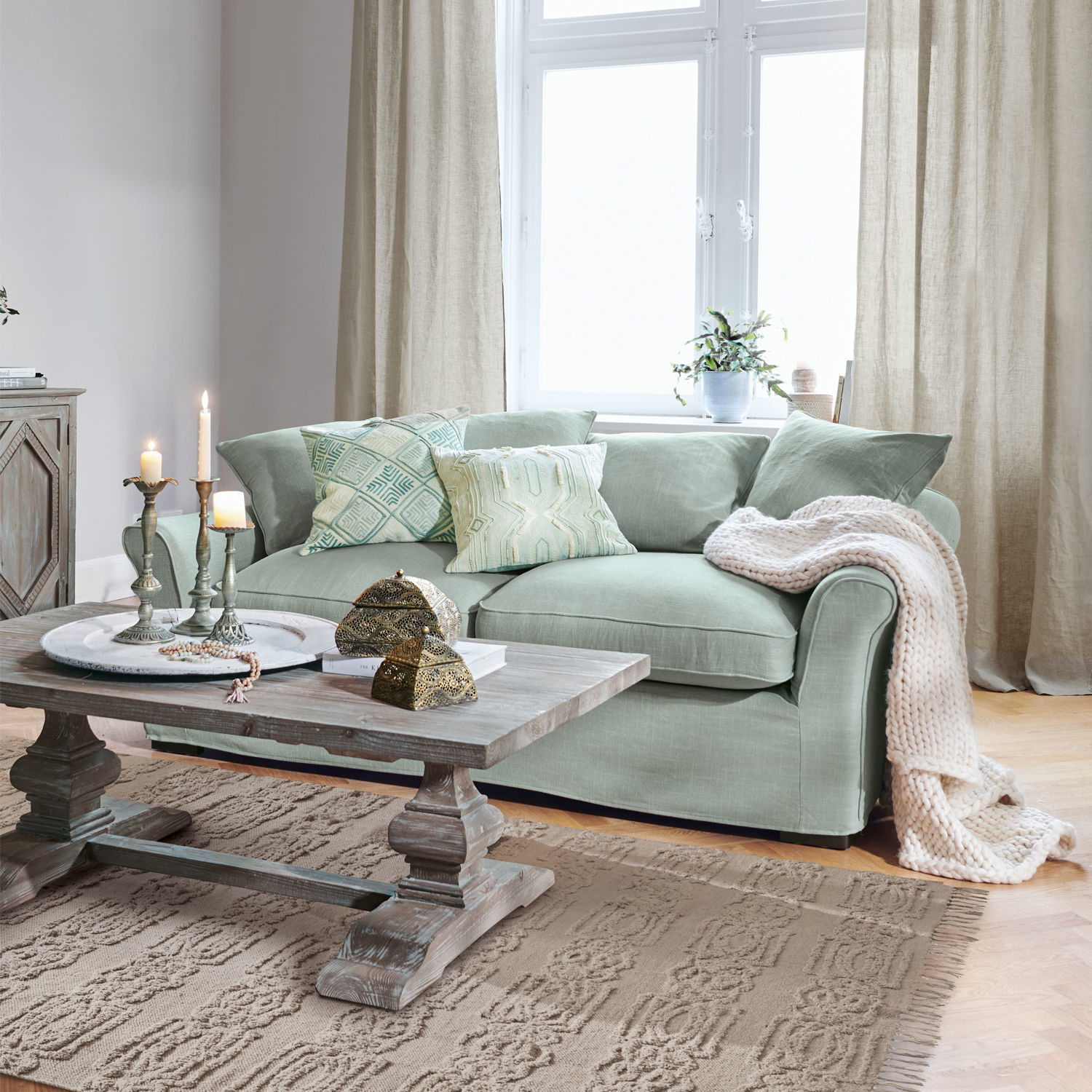 Was wäre das Leben ohne eine bequeme Basis? Nur halb so gemütlich! Wie gut, dass dieses cremefarbene Sofa nicht nur auf seine klassisch-schöne Optik setzt, sondern auch in Sachen Sitzkomfort bestens ausgestattet ist: Unter dem strapazierfähigen Bezug verbergen sich ein hochwertiges Holzgestell sowie eine formstabile Polsterung aus Schaumstoff und Entenfedern, die auch anspruchsvolle Lounge-Liebhaber glücklich machen. Zahlreiche Kissen geben Ihnen die nötige Rückendeckung, sodass Sie sich entspannt zurücklehnen und die Füße hochlegen können. Unser Tipp: Je nach Saison können Sie den dezenten Zweisitzer mit bunten oder gemusterten Kissen auffrischen.