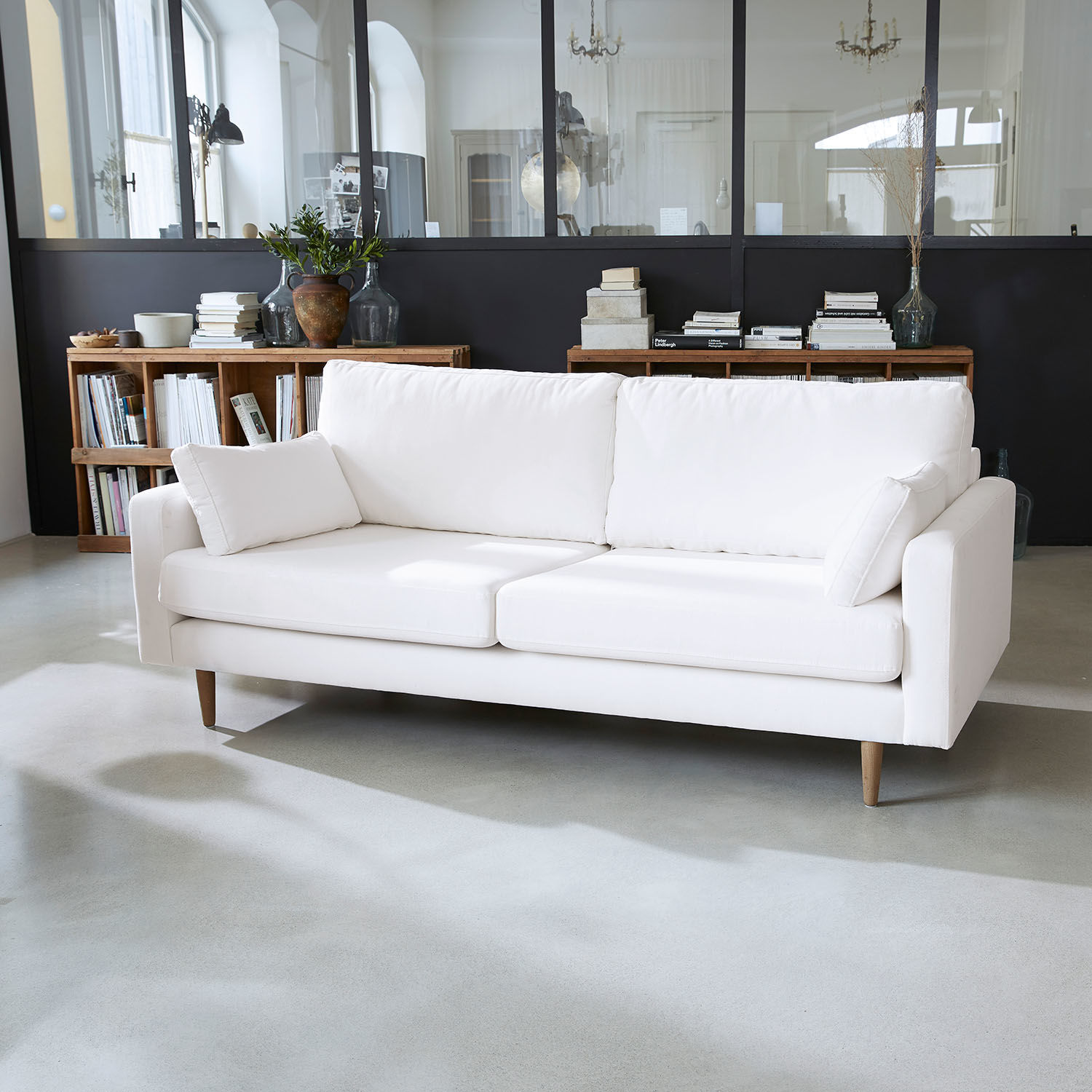 Perfekte Symmetrie, ästhetisches Design, wunderbarer Komfort: Diese exklusive Einheit aus Eleganz und bequemer Sitzmöglichkeit offenbart, wie kunstvoll eine aufs Wesentliche konzentrierte Optik ist. Im reduzierten Design vollendet sich hier zeitlose Schönheit durch klare visuelle Linien. Der puristische Stil eröffnet neue Möglichkeiten der optischen Entfaltung: So kommen neben der Symmetrie die mondäne Note des Sofas sowie seine grazilen Beine voll zur Geltung. Diese sind aus stabilem Eichenholz und geben dem Schmuckstück – wie auch der Rahmen – eine hohe Stabilität, sodass es stark belastbar ist. Die Kissen sind bequem und aus strapazierfähiger Baumwolle. Sicher ist: Das aparte Sofa wertet jedes Wohnambiente auf. Ob in der Leseecke im Licht einer stilvollen Lampe, in der Lounge, am Tisch für ein Treffen von Freunden oder auch für Geschäftspartner – mit diesem außergewöhnlichen Objekt zeigen Sie Stil und Klasse.