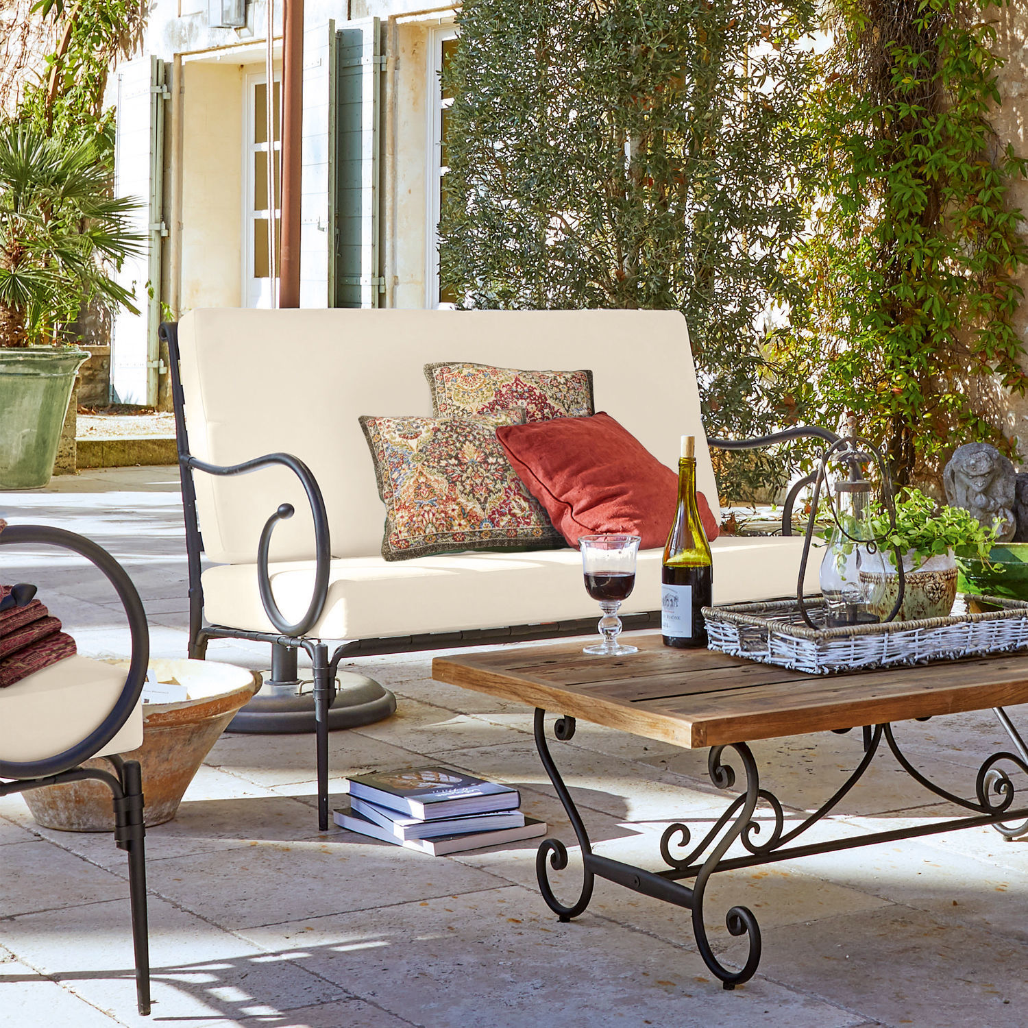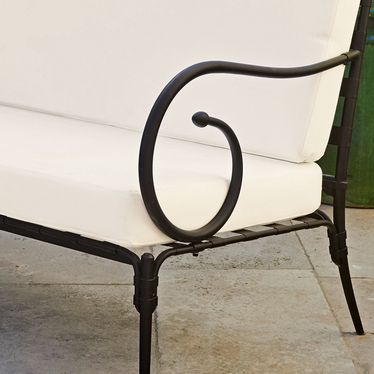Komfort trifft zeitlose Eleganz: Das stilvolle Sofa versprüht durch seine aparte Optik mit einer ausgewogenen Verbindung aus geschwungenen und klaren Linien das wunderbare Gefühl unbeschwerter Leichtigkeit. Es bezaubert durch seine klassisch schöne Form und bietet zwei bis drei Personen komfortable Sitzmöglichkeit. Entspannung garantiert! Auf Ihrem Balkon, Ihrer Terrasse oder Ihrem Garten macht es allein eine perfekte Figur, ist aber zudem auch als Teil einer Sitzgruppe (19513) erhältlich. Das filigrane Gestell besteht vollständig aus Eisen. So sind hohe Beständigkeit und beste Witterungsresistenz gesichert. Zudem sind die Kissenbezüge aus Olefin, das nicht nur wunderbar bequem ist, sondern auch pflegeleicht, outdoorfähig, UV-beständig und wasserabweisend: Ob kurzer Regenschauer oder dicke Tropfen – das Sofa trotzt Wind und Wetter, so dass Sie viele Jahre lang in diesem eleganten Möbelstück Entspannung finden werden, beim morgendlichen Frühstück ebenso wie beim Nachmittagskuchen oder abends, wenn Sie die letzten Strahlen der untergehenden Sonne genießen.