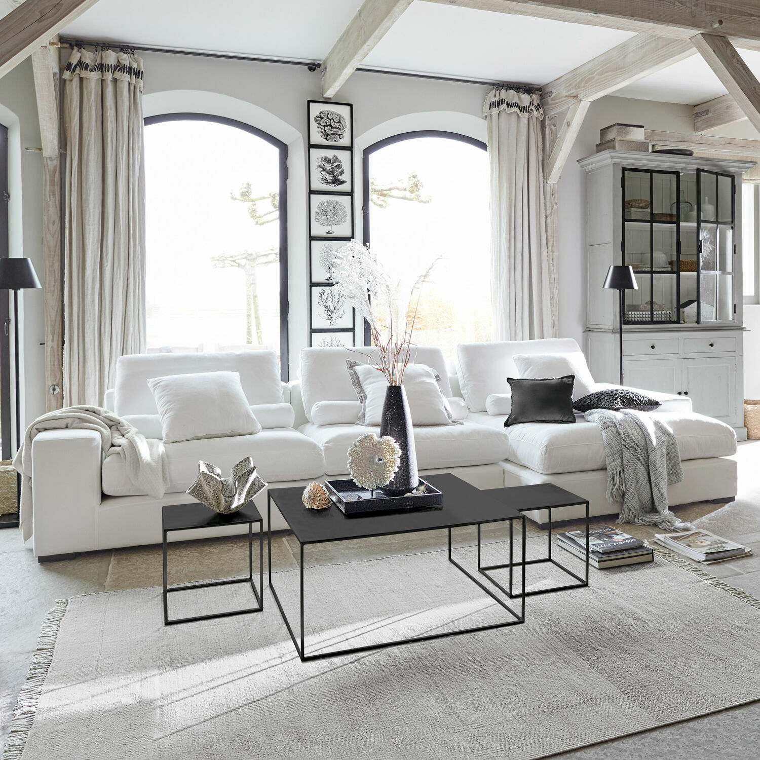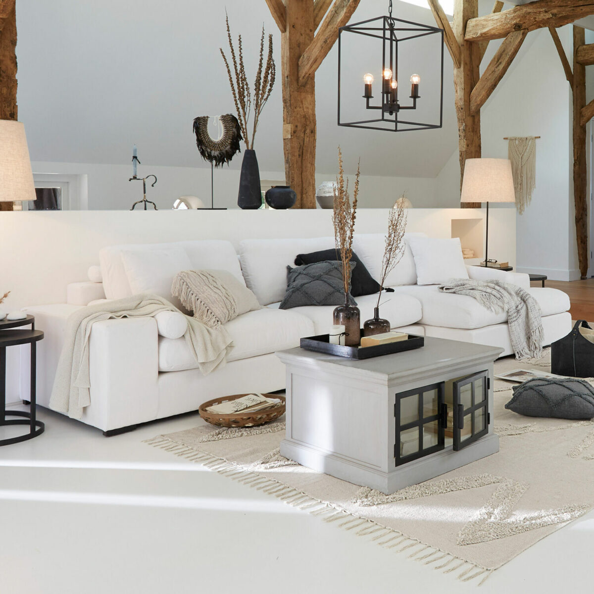 Großzügiges, edles Sitzmöbel inklusive fünf Kissen. Stabil gepolstert. Gestell aus Eichenholz, abnehmbarer Bezug aus reiner Baumwolle. Sie suchen das neue Herz […]