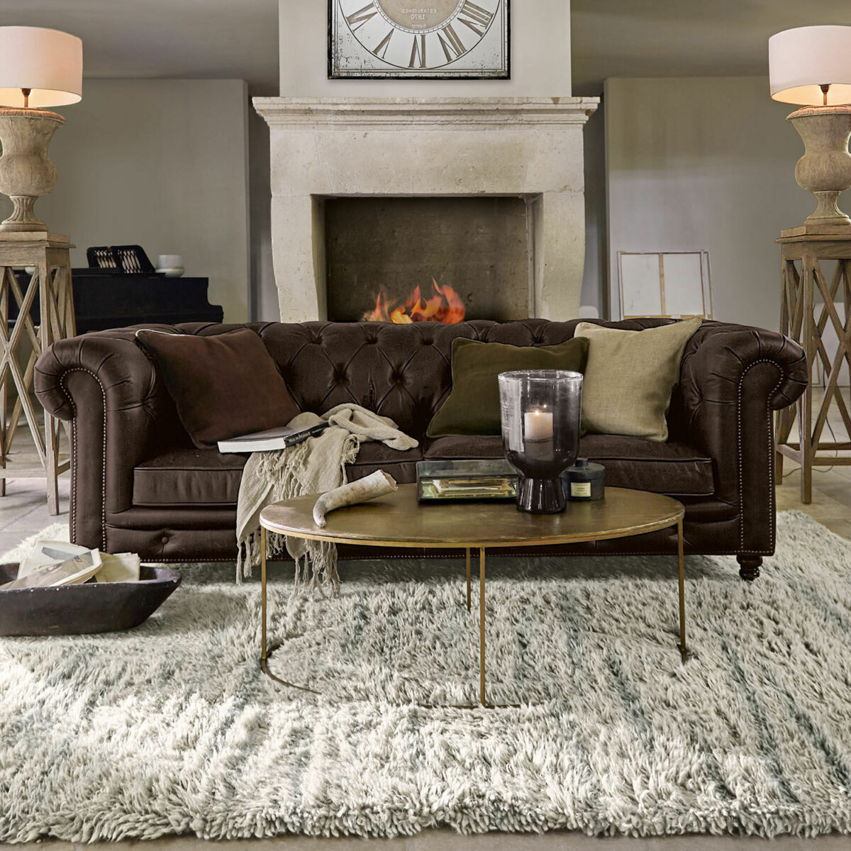 Ein Sofa wie aus einem alten Herrensitz, an dem wohlhabene Personen an Ihren Drinks nippen und wichtige wie auch unterhaltsame Gespräche führen. Holen Sie sich diesen nostalgischen Luxus nach Hause und nehmen Sie selbst Platz. Lehnen Sie sich zurück zwischen den schön geschwungenen, breiten Armlehnen und entspannen Sie sich auf angenehm festen Polstern mit dekorativer Faltenlegung und kunstvollen Strukturen im klassischen Chesterfield-Design. Ganz klassisch muss solch ein Sitz-Sofa natürlich mit Echtleder bezogen sein. Das garantiert nicht nur eine elegante Optik, sondern auch Langlebigkeit. Passend dazu die stilvollen Nieten, die dem Sofa einen perfekten Rahmen geben. Ob am Kaminfeuer, mit einem guten Glas Whisky oder Wein oder einem spannenden Roman – hier entfliehen Sie dem Alltag. Erfreuen Sie sich an einem exklusiven Design, das Ihr Zuhause noch schöner und stilvoller macht!