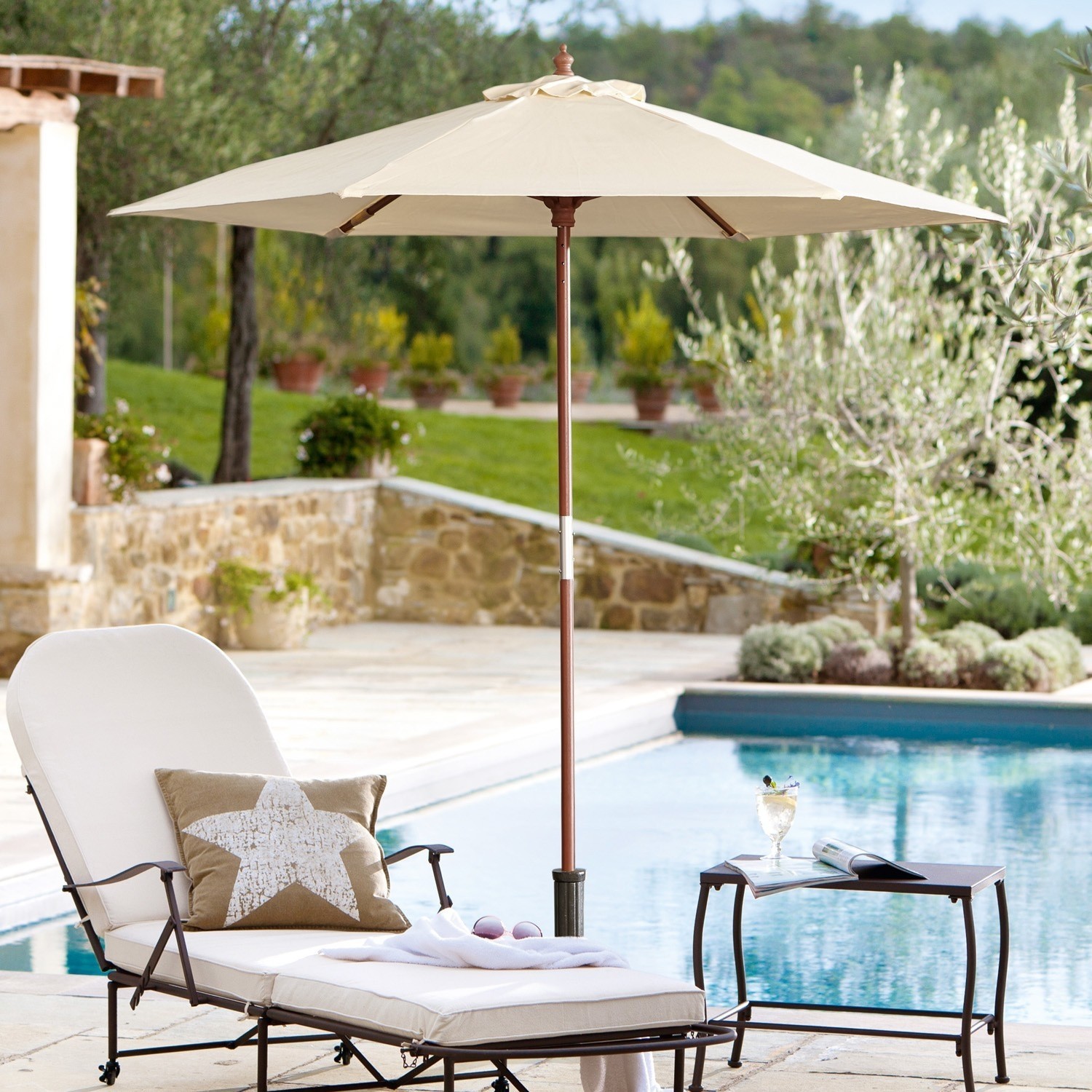 Schön auch für den kleineren Balkon oder das ganz persönliche Schattenplätzchen im Garten. Gediegene Qualität ist natürlich auch bei kompakteren Sonnschirmen Voraussetzung für Langlebigkeit. So sind hier Mast, Streben und Krone aus massivem Eukalyptusholz gearbeitet. die Bespannung mit integrierter Sturmhaube ist aus hochwertigem Olefin/Polyester, das auch mal einem Regenschauer Stand hält. Einen passenden Schirmständer finden Sie separat hier bei uns im Shop.