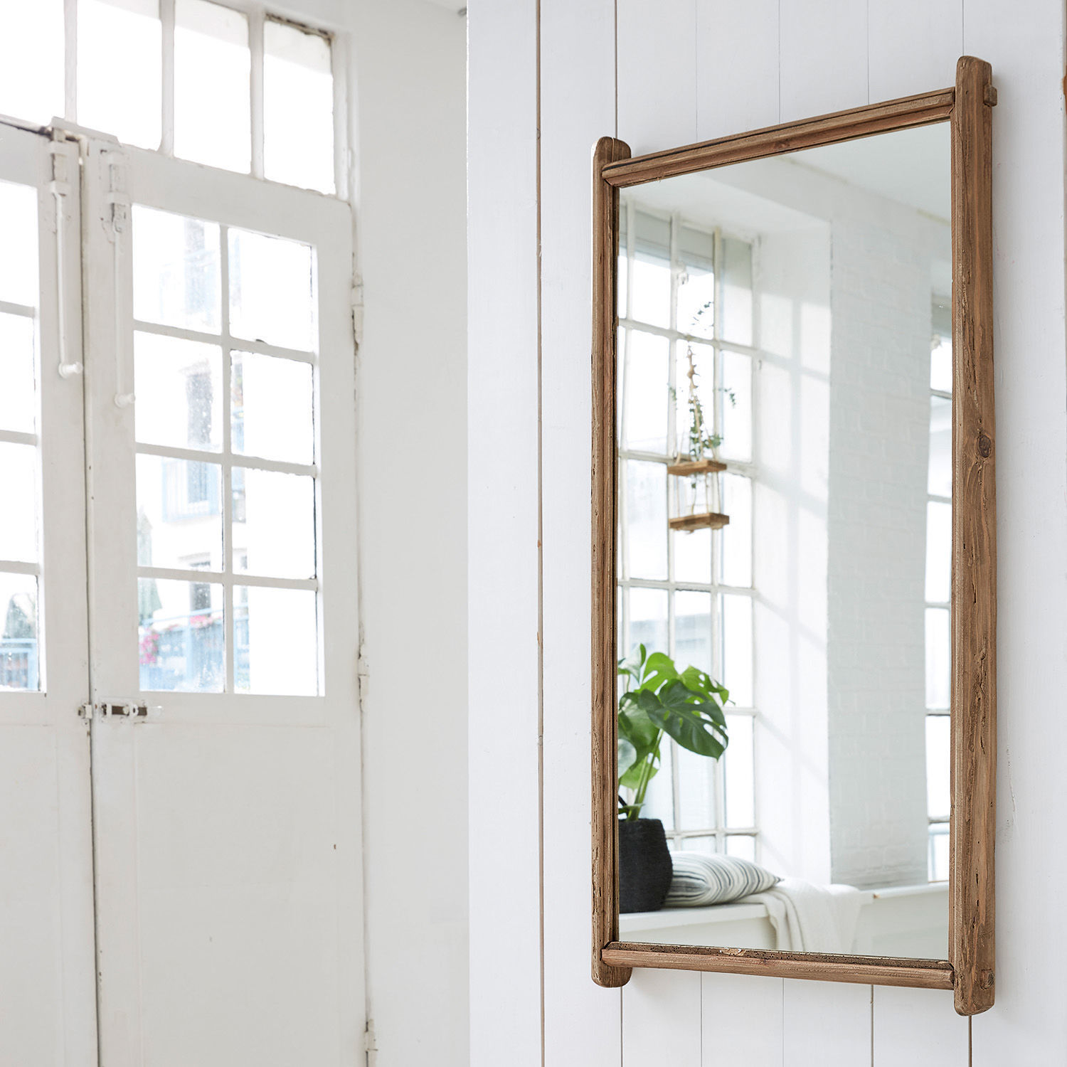Wer den authentischen Landhaus-Look liebt und lebt, wird über kurz oder lang mit Möbeln aus wiederaufbereitetem Holz in Berührung kommen. Und entdecken, dass dieses Holz eine absolut faszinierende Ausstrahlung hat. Es ist kein unbeschriebenes Blatt wie frisch geschlagenes und zu Möbel verarbeitetes Holz, sondern hat durch den langen Gebrauch wie durch den Einfluss von Wind und Wetter eine eigene Persönlichkeit entwickelt, die auch in den Möbelstücken des zweitens Lebens deutlich spürbar ist. Holen Sie sich diesen Spiegel in Ihr Zuhause, dann werden Sie bald wissen, wovon wir sprechen. Der Rahmen ist sorgfältig im traditionellen Handwerksstil gearbeitet, wobei darauf geachtet wurde, dass die feinen Gestaltungs-Details die Ausstrahlung des Holzes nicht stören, sondern nur noch beeindruckender zur Geltung bringen. Während das Glas eine dezente Färbung aufweist, die perfekt mit dem Antik-Finish harmoniert. Dieser Spiegel passt gut in den Eingangsbereich des Hauses oder einer Wohnung, er kann Ihnen aber auch im Ankleidezimmer oder im Schlafzimmer bei der Auswahl der Kleidung für den Tag oder Abend wie beim finalen Styling zu Diensten sein. Gerne werden Spiegel aber auch als dekorative Accessoires in die Raumgestaltung integriert, wo sie für überraschende Effekte sorgen können.