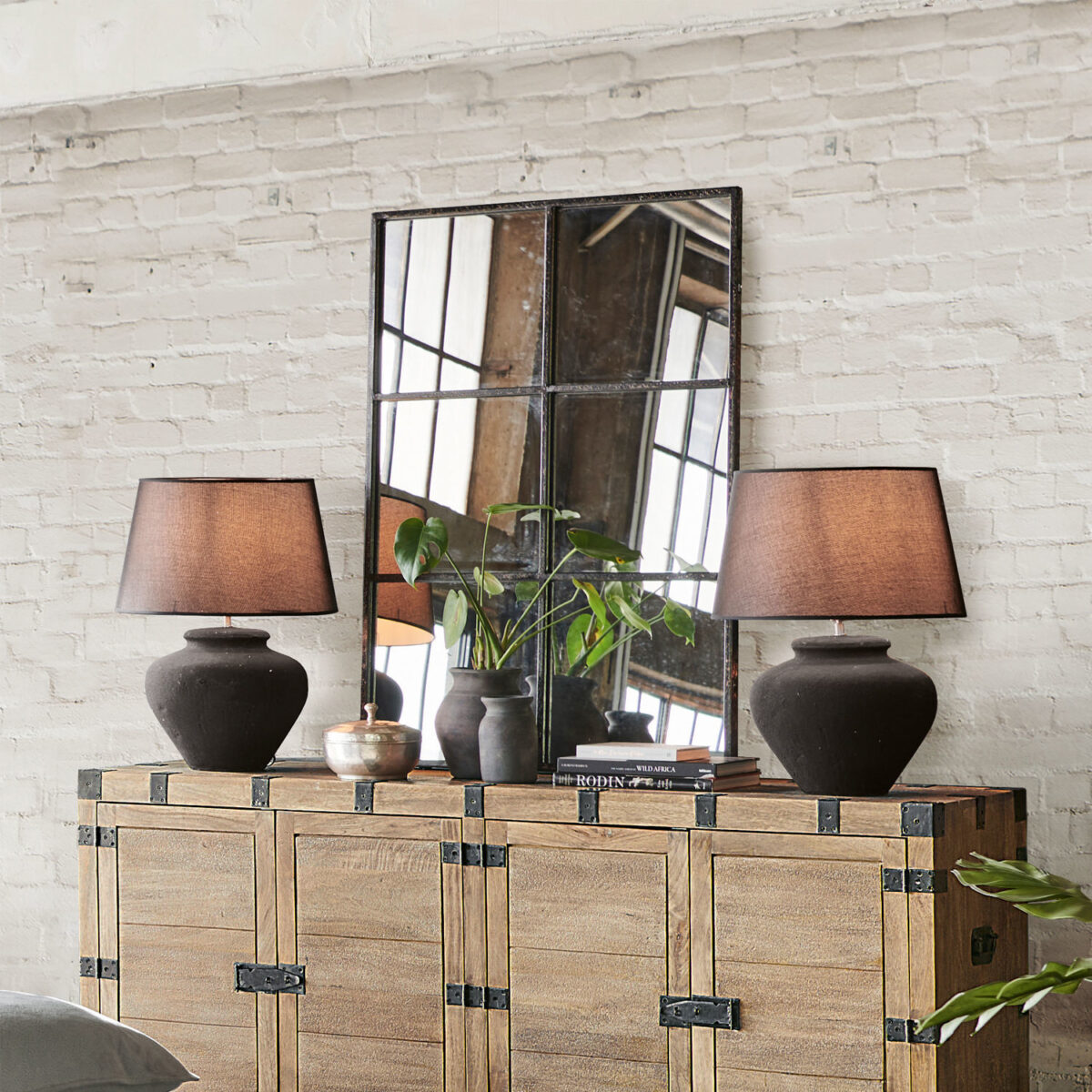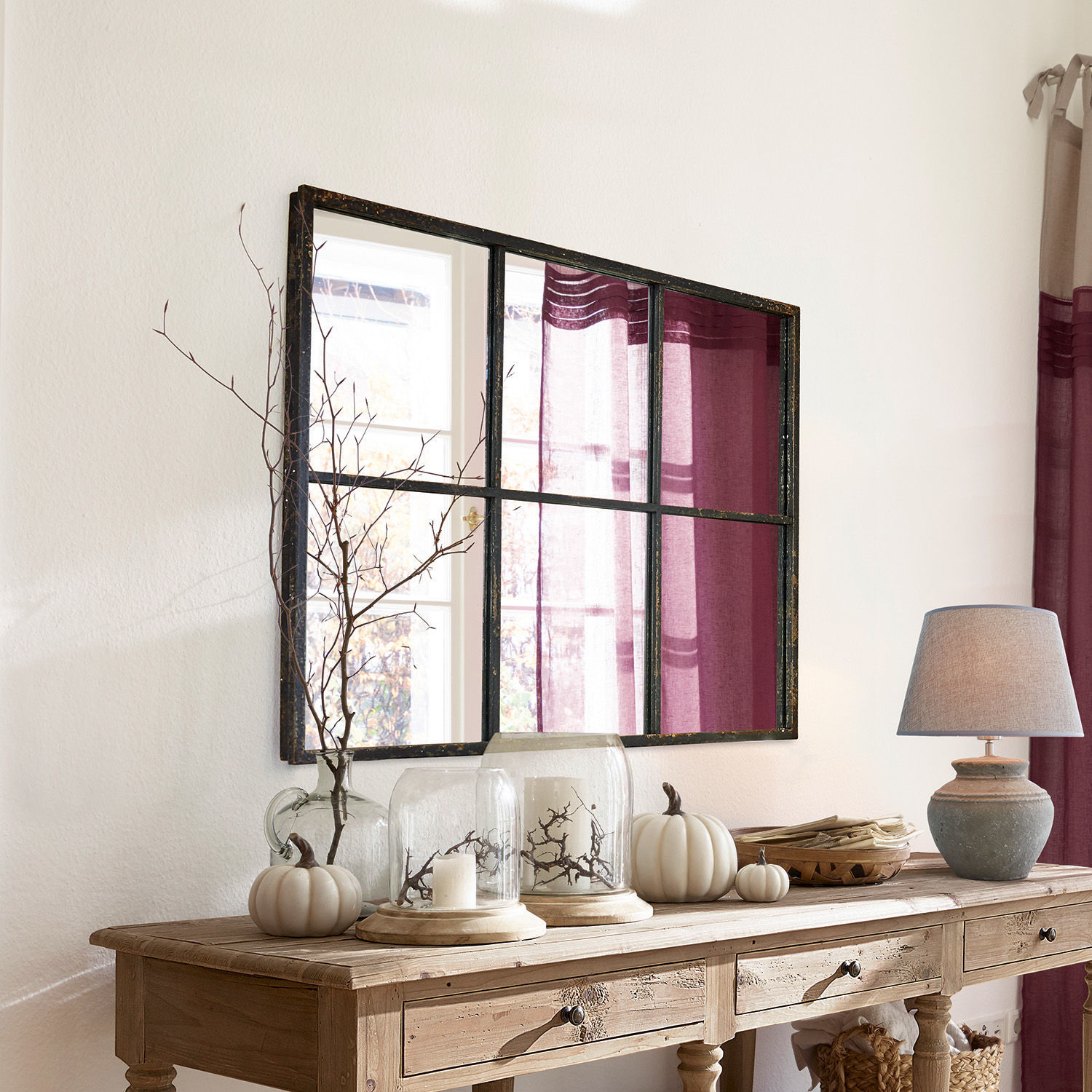 Hier werden Assoziationen an historische Sprossenfenster deutlich. Filigran die aufgesetzten Eisenblenden mit Antik-Finish. Ein stattlicher Spiegel, eigenständig […]