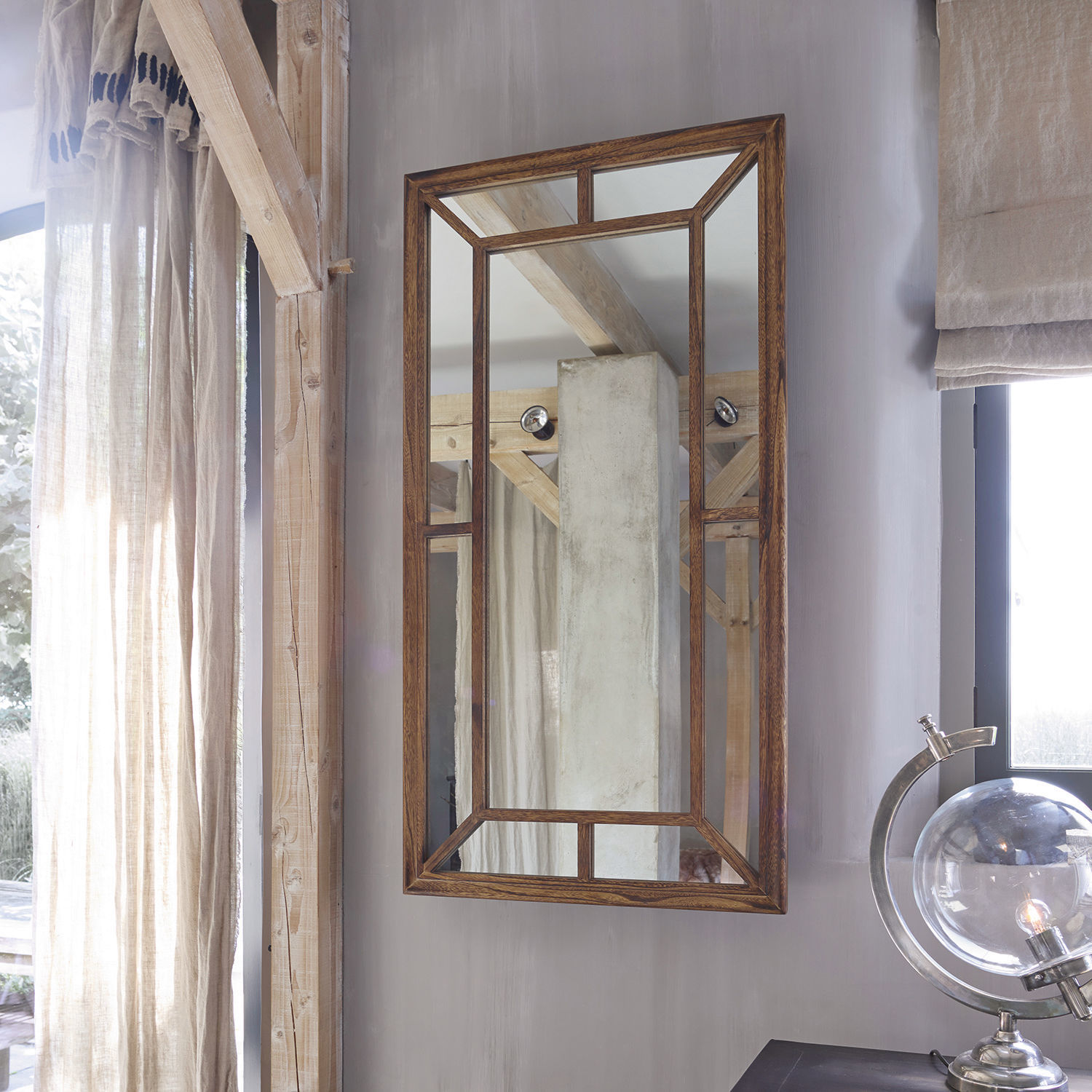 Immer mehr Menschen greifen bei der Wahl ihrer Wohnungseinrichtung zu Möbelstücken mit Charakter, die aussehen, als könnten sie auf eine lange, ereignisreiche Vergangenheit zurückblicken. Möbelstücke wie dieser Spiegel, der sich mit seiner nostalgischen Anmutung in Ihr Herz schmeichelt und vielleicht bald Ihre Wohnung schmückt. Seine besondere Blickfangwirkung hat er der raffinierten Gestaltung zu verdanken: Die filigranen Holzelemente sind so angeordnet, dass sie wie ein Rahmen im Rahmen wirken – ein räumlicher Effekt, der den Blick wie durch ein Fenster auf den Raum freigibt. Als Möbelstück, das mit einem Fuß in der Vergangenheit steht, ist der Spiegel in bester Handwerkstradition aus einer hochwertigen Holzqualität gefertigt, und zwar aus robustem Blauglockenholz. Der Blauglockenbaum, der auch Kaiserbaum genannt wird, weil er der Lieblingsbaum des österreichischen Kaisers Franz Joseph I. war, ist einer der imposantesten Bäume der Erde und sein wertvolles, harzfreies Holz wird gerne für Musikinstrumente und luxuriöse Möbel verwendet. Das dezente Antik-Finish schließlich, mit dem das Holz veredelt wurde, sorgt für den trendigen Shabby-Charme. Ein Spiegel, der sich harmonisch in ein traditionelles Landhaus-Interieur einfügt, der aber auch in einem modernen Wohn-Ambiente für die individuelle Note sorgt.