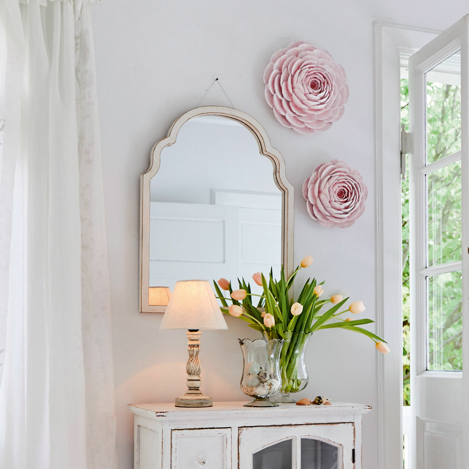 Ein stilvoller Spiegel ist der einfachste Weg, um einen Raum aufzuwerten und ihm mehr Weite zu verleihen! Dieses Modell verfügt über einen auffällig hübschen Rahmen aus natürlich schönem Kiefernholz. Das Design hebt sich wohltuend vom kreisrunden oder rechteckigen Einerlei ab. Die kunstreiche Form erhält durch ein aufwendig appliziertes Finish im Shabby-Look eine tolle Vintage-Optik. Das hochwertige Spiegelglas reflektiert das Licht und öffnet den Raum. Die schlichte Eleganz des Spiegels gibt Ihnen viele Möglichkeiten, Ihrem Zuhause ein ganz besonderes Flair zu verleihen. Die Rückseite ist mit zwei stabilen Haken ausgestattet, die eine sichere und einfache Installation ermöglichen.