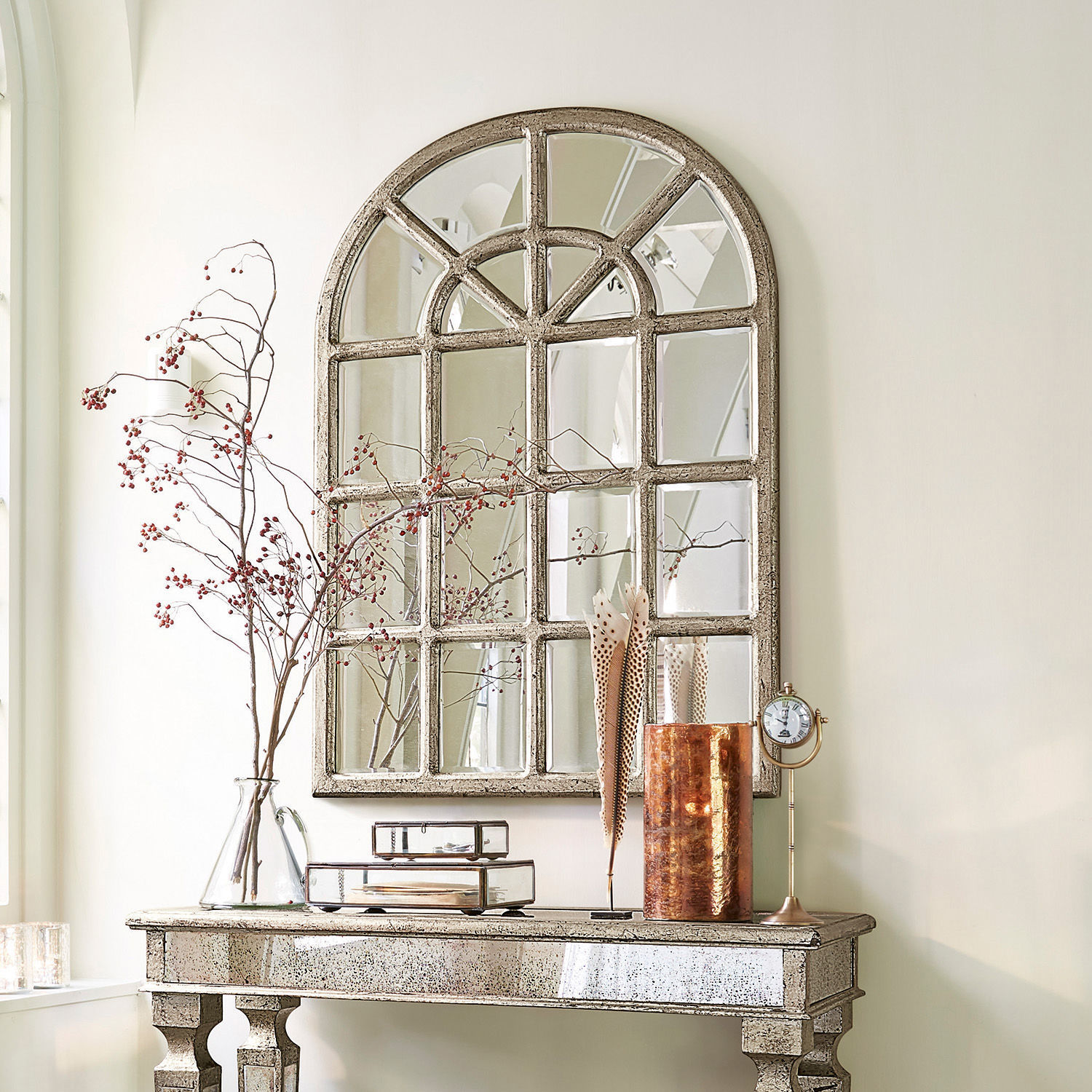 Charmante Fensteroptik mit aufgesetzten Sprossen aus Glas. Aufwendig gearbeiteter Glasrahmen mit Vintage-Finish. Kann an die Wand gelehnt oder aufgehängt werden. […]
