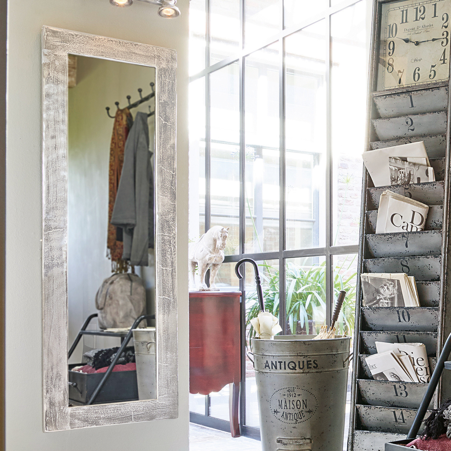 Ein luxuriöses Design mit zeitlosem Chic. Der geradlinige, große Spiegel hat einen dekorativen Rahmen aus Aluminiumguss. Dieser ist matt und mit einem charmanten Antik-Finish verziert. So erhält der Spiegel eine leicht nostalgische Note. Er lässt sich sowohl vertikal als auch horizontal hängen oder natürlich auch stellen. Zu jedem Wohnstil ein dezentes Schmuckstück, ob Industrial-Stil, Shabby-Chic oder Landhaus. Hieran haben Sie lange und zu jedem Interior Freude. Der edle Spiegel ist mit einem stabilen Aufhänger aus Eisen auf der Rückseite versehen. Ein echter Klassiker für Ihr Zuhause.
