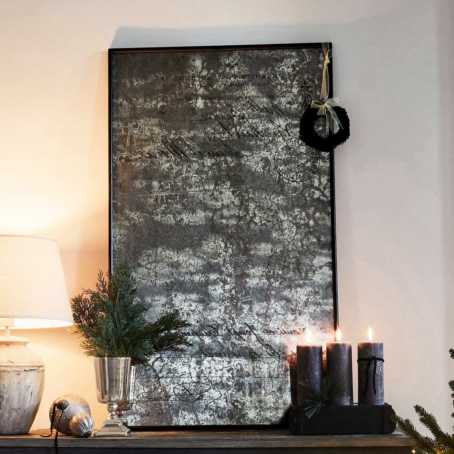 Wer Geheimnisse liebt, wird von diesem Spiegel sofort fasziniert sein. Denn er zeigt nicht etwa Ihr Konterfei, wenn Sie vor ihm stehen, sondern die Spiegelfläche ist dunkel getönt und mit kleinen Sprengseln übersät – alles sichere Anzeichen für das hohe Alter des Spiegels. Aber Halt: Sind da im Hintergrund nicht auch Schriftzüge zu erkennen? In einer altertümlichen Handschrift und mit einer Art Poststempel versehen? Wir lüften das Geheimnis für Sie aber nur so weit, dass wir Ihnen erzählen, dass anscheinend in einem französischen Ort namens Larchant im Departement Seine-et-Marne irgendwann eine Postkarte aufgegeben wurde. von wem geschrieben und an wen adressiert, verraten wir aber nicht. Und wie die Relikte einer alten Postkarte auf diesen Spiegel gekommen sind, überlassen wir ebenfalls Ihrer Fantasie. Wir möchten aber darauf hinweisen, dass der authentische Antik-Look der Spiegelfläche dem großen handwerklichen Können des Künstlers zu verdanken ist. Gefasst ist der Spiegel stilecht mit einem Rahmen aus massivem Eisen. Genießen Sie das geheimnisvolle Flair, das der Spiegel verbreitet, und lassen Sie Ihre Gedanken nach Frankreich wandern…