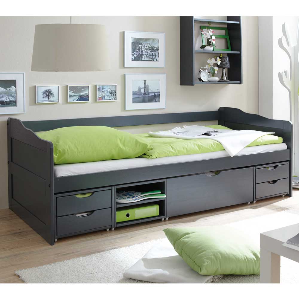 – Massivholzbett Grau – Jugendbett Kiefer Massivholz – Bettgestell Modern & Jung – Bett Breite: 96 – Holzbett Höhe: 69 – Einzelbett Tiefe: 205 – Bettrahmen Bettseitenhöhe [Einstieg]: 45 – Naturholzbetten Liegemaße: 90×200 – Bett mit stauraum Ohne Beleuchtung – Kastenbett Zerlegt, zum leichten Selbstaufbau (Montageanleitung liegt bei) – Vollholzbett Lieferung ohne Matratze – Funktionsbett Lieferung ohne Lattenrost – Hohes bett Vertiefung für Lattenrahmen (cm): 7 – Echtholzbett Fußende-Höhe (cm): 69 – Komfortbett Kopfende-Höhe (cm): 69 – Massiv vollholz betten Bodenabstand zum Seitenteil (cm): 29 – Bett mit schubladen Füße: Wangen an Kopf- und Fußende – Schubkastenbett Massivholz Oberfläche und Lackiert – Stauraumbett Inkl Bettkasten – Massivbett Belastbar 120-149 KGInformationen zur Lieferung:Die Zustellung dieses Produktes erfolgt per DPD. Sollten Sie bei der Erstzustellung nicht angetroffen werden, hinterlässt der Zusteller in Ihrem Briefkasten eine Benachrichtigungskarte mit dem zweiten Liefertermin, den Lieferdaten sowie Kontaktinformationen. Somit haben Sie die Möglichkeit, sich bezüglich des Empfangs Ihrer Ware mit DPD in Verbindung zu setzen. Die Zustellung erfolgt maximal 3x, sofern die beiden ersten Termine erfolglos bleiben sollten. Die Auslieferung erfolgt von Montags bis Freitags. Eine Zustellung an Sonn- und Feiertagen ist nicht möglich.