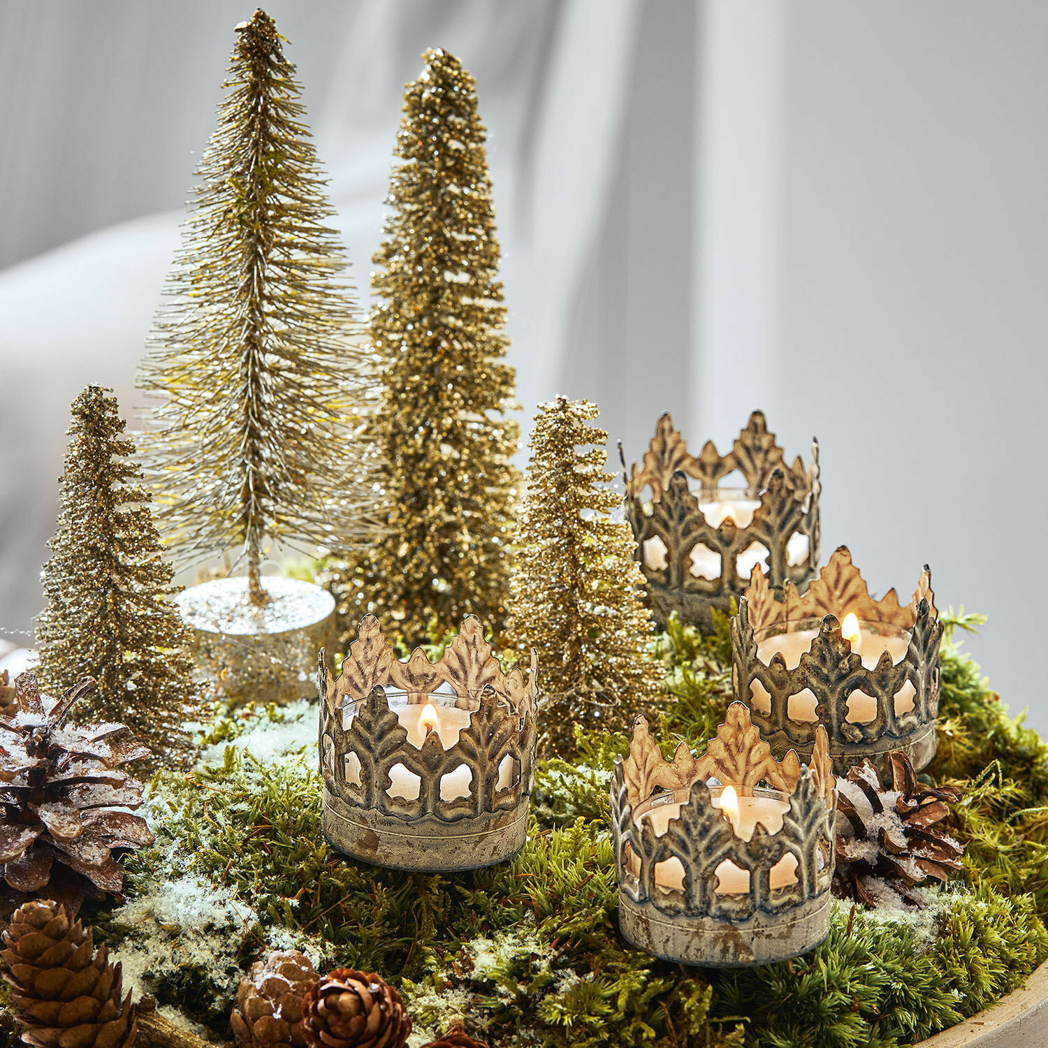 Freuen Sie sich auf pure Nostalgie, nicht nur zu Weihnachten. Diese bezaubernden Steckwindlichter zaubern royales Flair zu Ihnen, denn sie sind als hübsche Krönchen gestaltet – einfach perfekt zum Shabby-Chic. Das kunstvolle Quartett besteht aus Eisen mit schönem Antik-Finish, das dem Set noch etwas Einzigartikeit verleiht. Es ist sehr vielseitig nutzbar, etwa in den Adventskranz oder feuersicher in Pflanzentöpfe gesteckt. Auch einzeln könnten die tollen Stecker platziert werden, vielleicht in einem mit Sand gefüllten Glas oder einer Schale. Hier können Sie ganz kreativ werden und sich immer wieder über gemütlichen Kerzenschein und einen wirklich romantischen Deko-Effekt freuen.