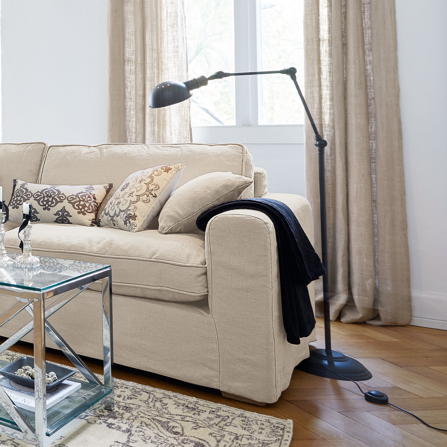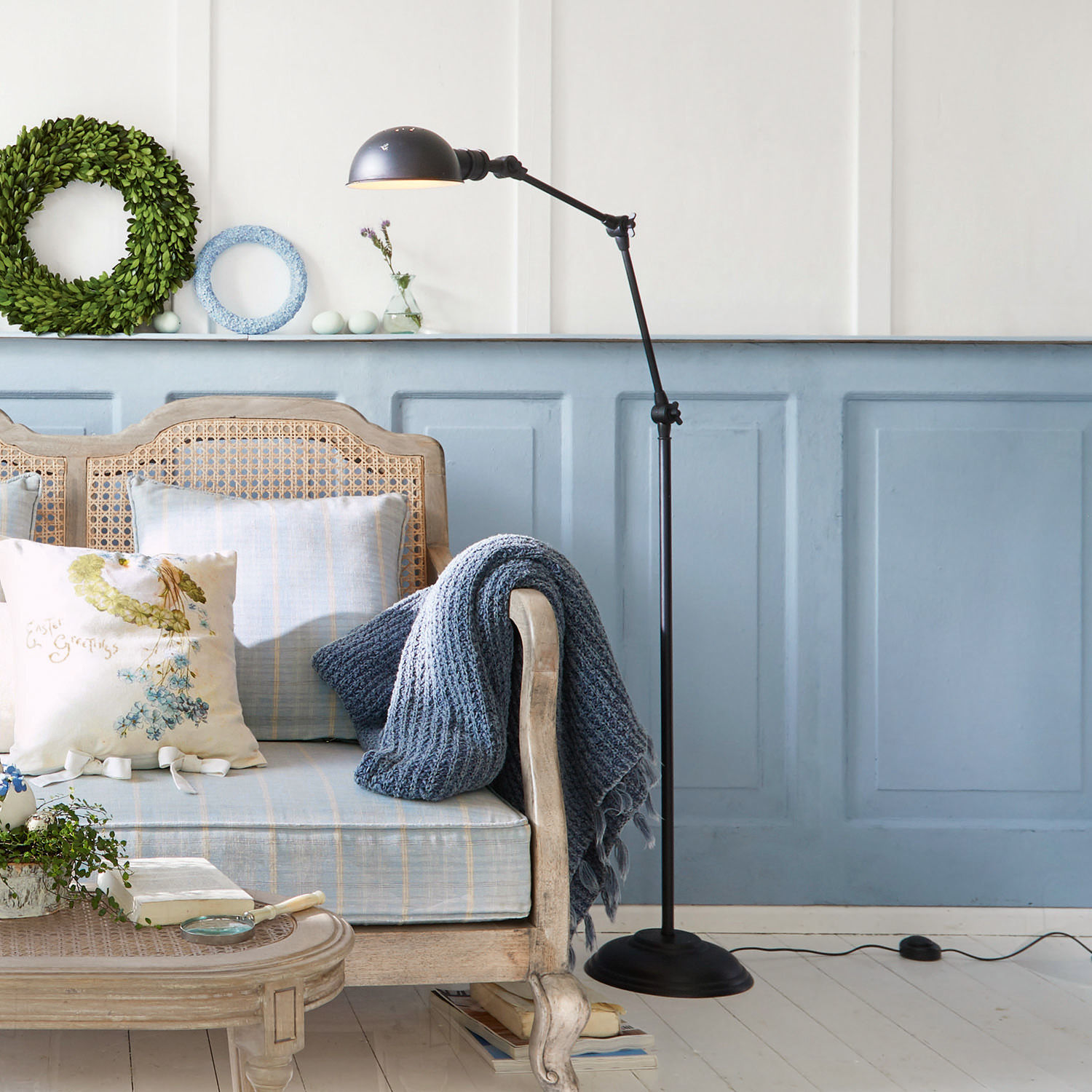 Perfekt ausgeleuchtet wird Ihr Zuhause mit dieser Stehlampe im Industrial-Look. Die 1,70 Meter hohe Stehleuchte überzeugt mit ihrem Design und ihrer Funktionalität. Der runde, stabile Fuß der Leuchte ist mit den eingearbeiteten Details schon ein Hingucker. Der runde Ständer der Lampe ist in drei Bereiche unterteilt. An den beiden dazwischen liegenden Gelenken lässt sich die metallene Stehleuchte ganz individuell verstellen. Und mit dem dritten Gelenk können Sie auch den Lampenschirm ideal ausrichten. Im Lampenschirm wird das Design des Fußes wieder aufgegriffen. Und auch hier fallen die individuellen Details ins Auge. So scheint das Licht des Leuchtmittels beispielsweise durch die eingearbeiteten kleinen Löcher auch durch die Oberseite des Lampenschirms. Diese nostalgischen Details sowie die hochwertige Verarbeitung machen die Stehlampe zu einem ganz besonderen Stück. Funktional, aber gleichzeitig elegant passt es dabei ebenso zum Landhaus-Stil wie zum Industrial-Look.