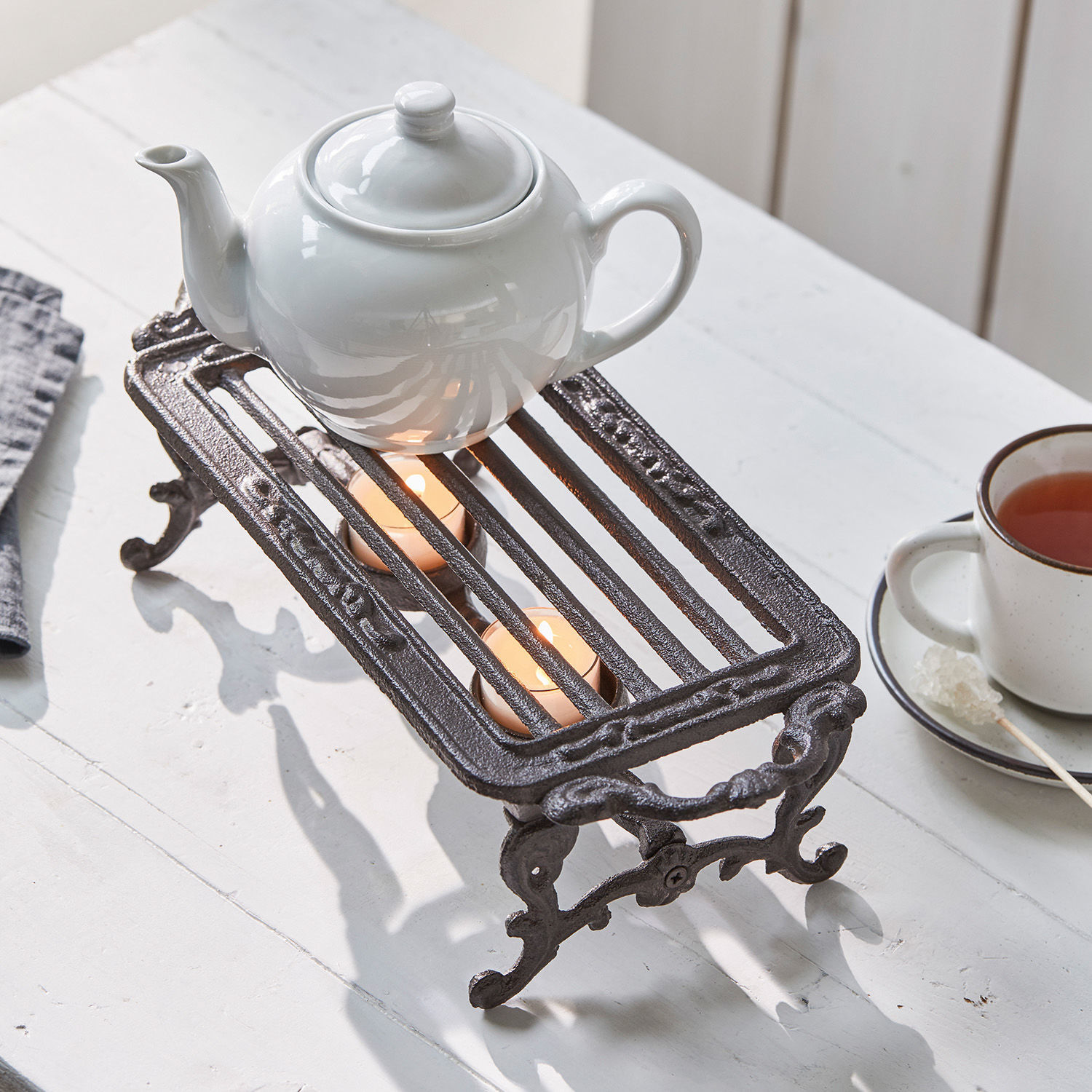 Dieses hochwertige Stövchen ist nicht nur wunderschön, sondern auch sehr vielseitig. Seine Größe ist nicht nur ideal, um Tee warmzuhalten – auf dem breiten Rost findet auch ein Topf oder eine Pfanne ausreichend Platz. Somit ist dieses gusseiserne Schmuckstück ein perfektes Accessoire für den festlich gedeckten Esstisch. Natürlich können sie das Stövchen auch nutzen, um das Fondue-Set ihrer Wahl zu erweitern.