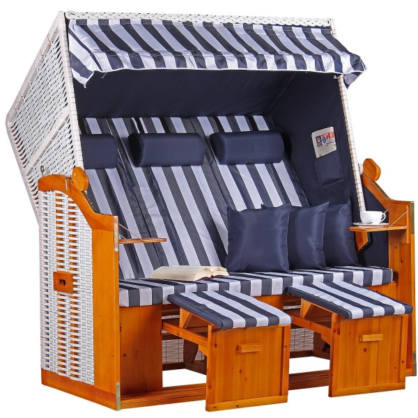 Strandkorb Baltic Dreisitzer PE weiß Dessin Blau Weiß