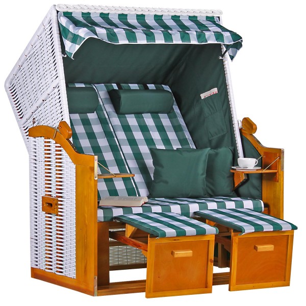 Strandkorb Baltic PE weiß Dessin Karo Grün
