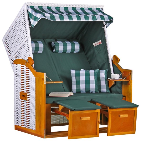 Strandkorb Baltic PE weiß Dessin Uni Karo Grün
