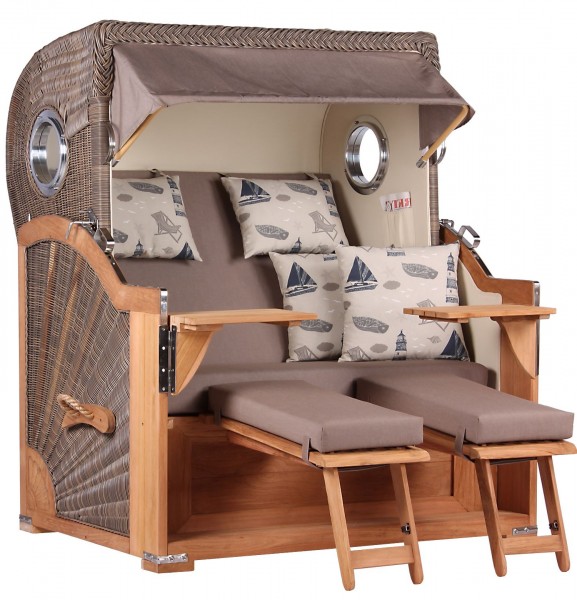 Strandkorb Norderney Teak Bullauge PE grey Dessin 540-KOMPLETTSET