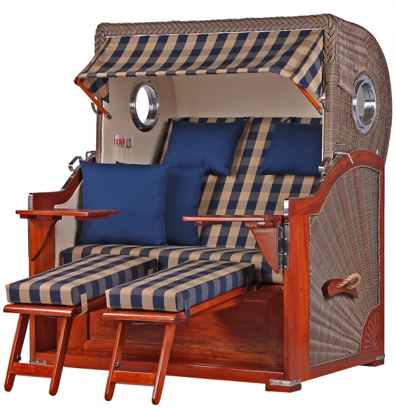 Strandkorb Westerland Mahagoni Bullauge PE grey Dessin...
