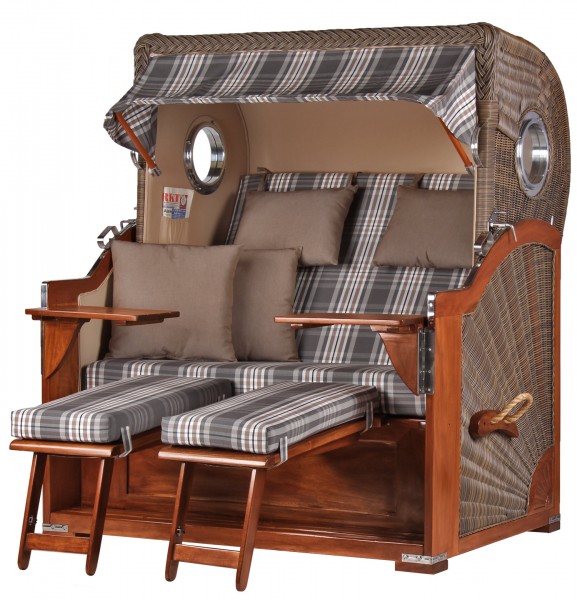 Strandkorb Westerland Mahagoni Bullauge PE grey Dessin...