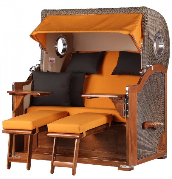 Strandkorb Westerland Mahagoni Bullauge PE grey Dessin...