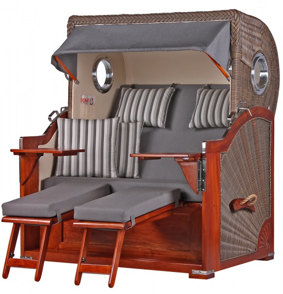 Strandkorb Westerland Mahagoni Bullauge PE grey Dessin...