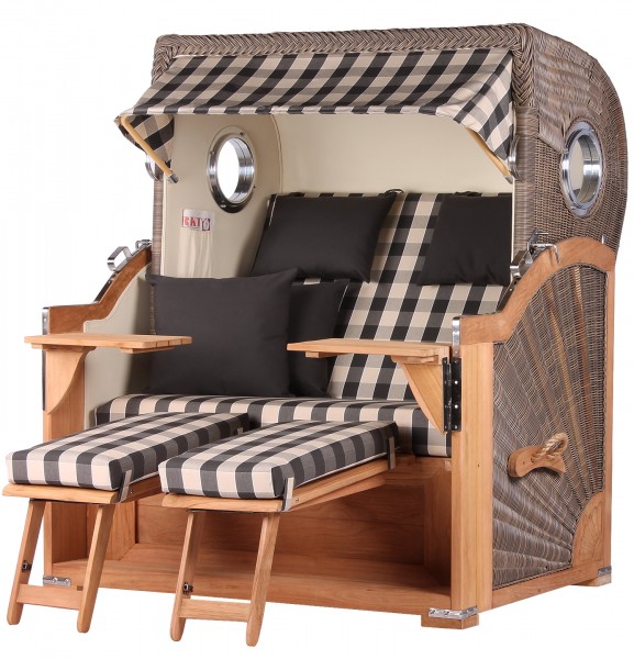 Strandkorb Westerland Teak Bullauge PE grey Dessin...