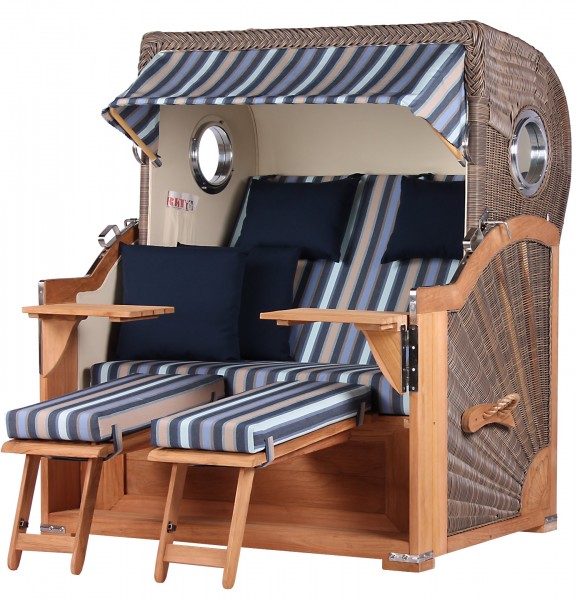 Strandkorb Westerland Teak Bullauge PE grey Dessin...