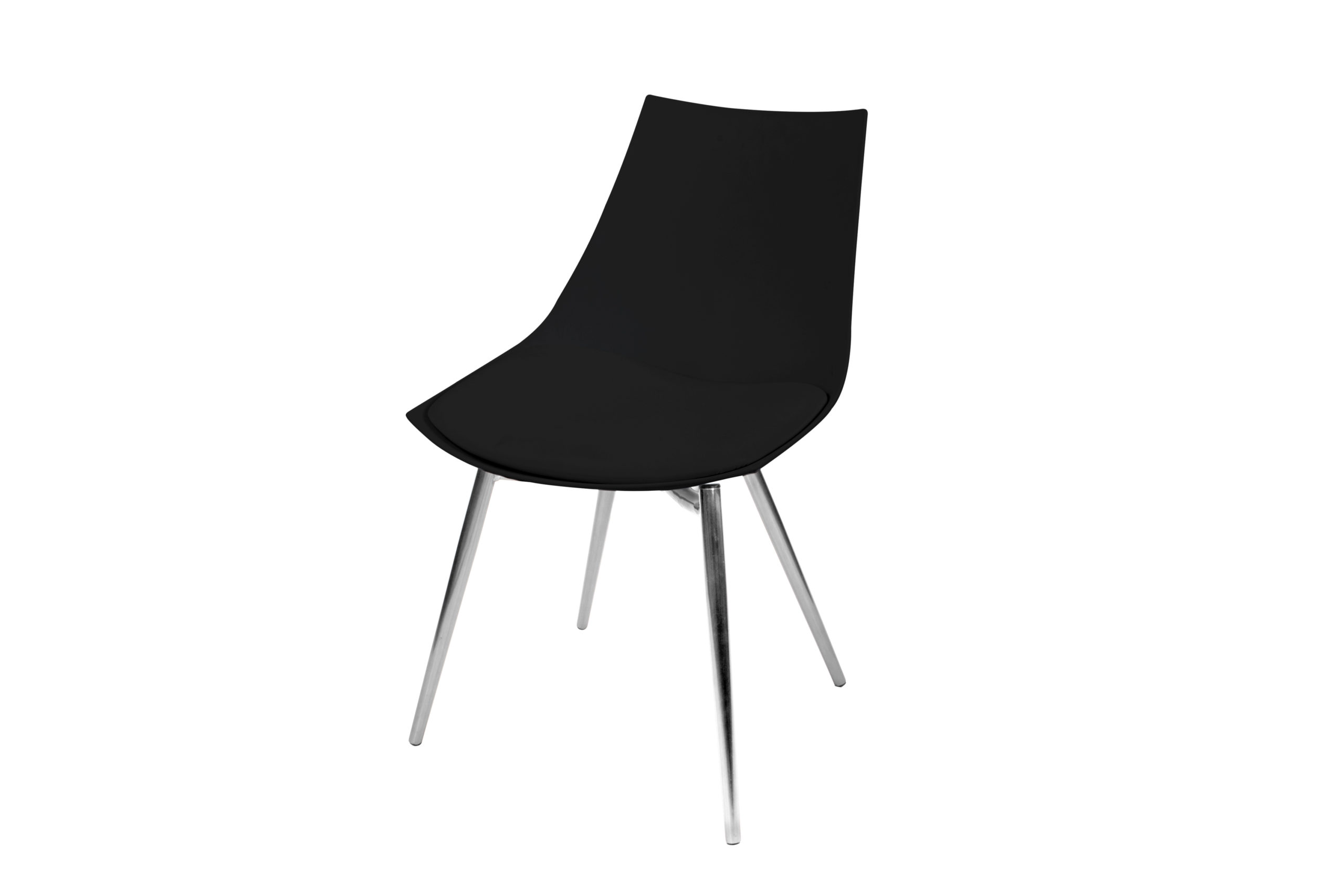Das ergonomische Design und die Schaumstoff-Sitzfläche dieses soliden Stuhls bieten hohen Komfort. Vor allem für die Küche oder das Esszimmer ist der Stuhl daher ideal geeignet. Der schwarze Bezug aus Kunstleder ist nicht nur einfach abwischbar, sondern dank der schlichten und dezenten Farbgebung auch in jeder Einrichtung einsetzbar. Unterstrichen wird die stilvolle Optik der Sitzgelegenheit durch elegante Stuhlbeine aus Metall.