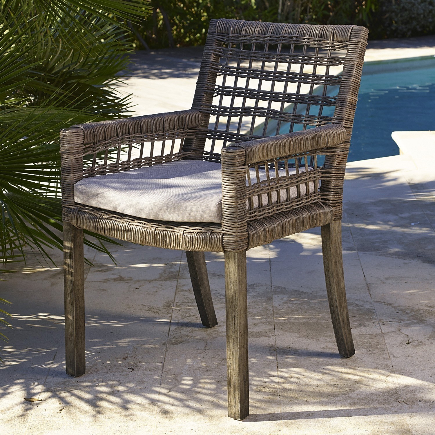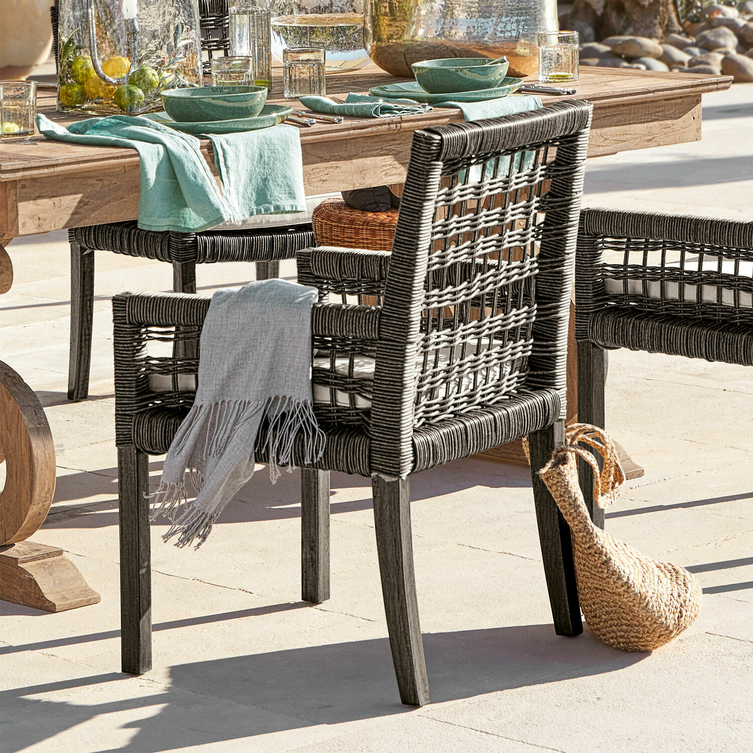 Dieser filigran geflochtene Kunstrattanstuhl verströmt mit seinem hellen Sitzkissen eine sommerliche Leichtigkeit. Er harmoniert mit hellen Shabby Chic Möbeln ebenso wie mit runden Holztischen oder gusseinsernen Tischen. Diese Kombinationen lassen das Kunstrattan fast natürlich wirken. Der Grundrahmen und die Beine des Stuhls bestehen aus Akazienholz. Es hat eine sehr feine Holzoberfläche mit einer sehr interessanten, gut sichtbaren Maserung. Das massive Akazienholz verleiht ihm eine gute Stabilität und unterstreicht mit seinem warmen Holzton die gemütliche Einrichtung seiner Umgebung. Im Garten begeistert das Holz mit seinen robusten Eigenschaften und erweist sich als bequemer Outdoorstuhl. Kleine Löcher in der Sitzplatte sorgen für einen guten Wasserablauf bei Regen. Die Kissen sind im Lieferumfang enthalten.
