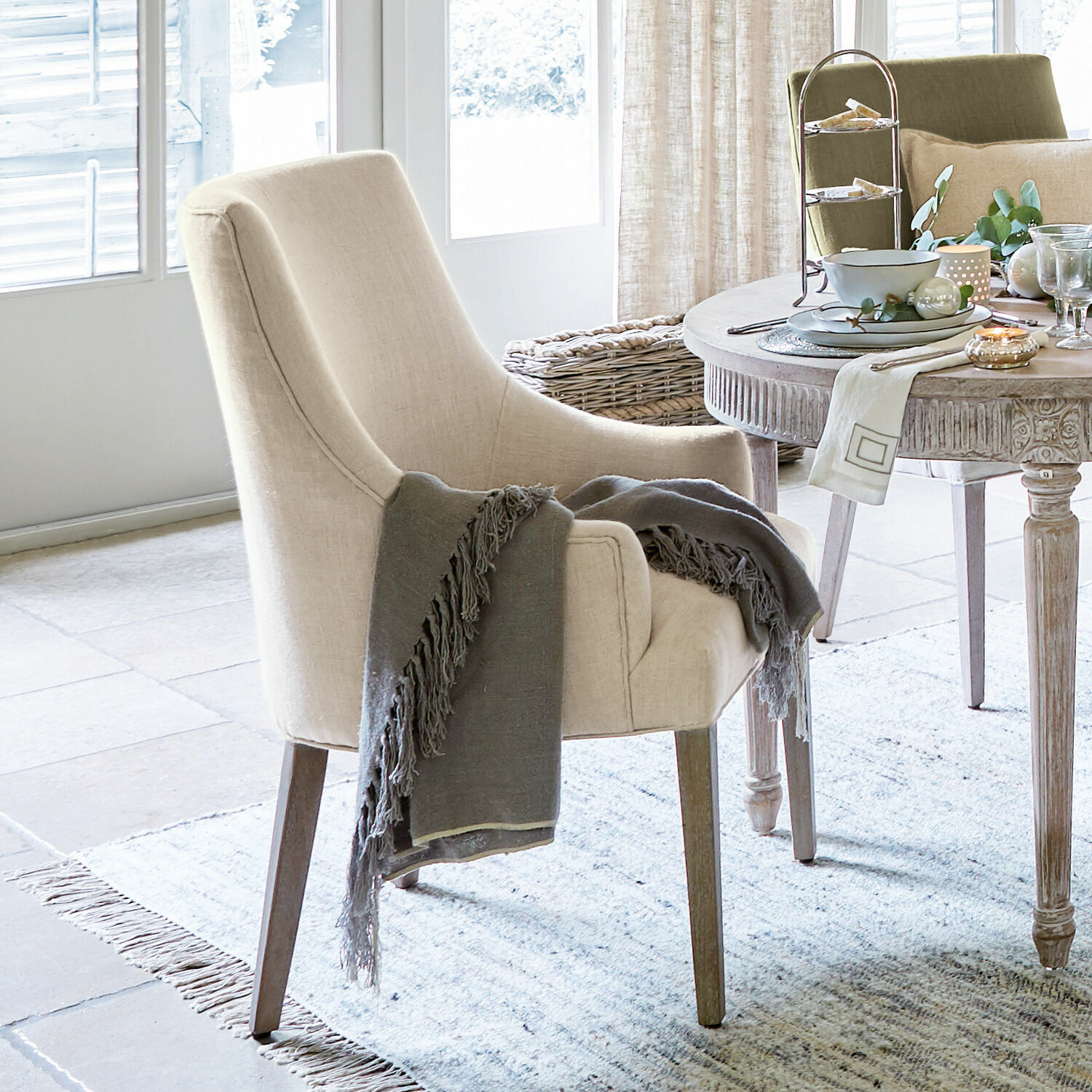 Einladend steht er da, als Sie den Raum betreten. Ihnen fallen sofort die weiche Polsterung und der edle Stoff auf, über den Sie am liebsten mit der Hand streichen würden. Das ist ein Stuhl, dessen Einladung man gerne annimmt. Wir können Ihnen versichern, das Sitzerlebnis wird genau so sein, wie es der erste Eindruck vermittelt. Es lohnt sich also, einen Schritt auf diesen Stuhl zuzugehen und mit dem streichelweichen Baumwollbezug in Beige Tuchfühlung aufzunehmen. Dabei bekommen Sie auch gleich einen Eindruck von der hochwertigen Schaumstoffpolsterung, die sich angenehm weich an den Körper anpasst, aber auch den nötigen Halt bietet, der für gutes Sitzen unerlässlich ist. Worauf also noch warten? Es ist an der Zeit, sich hineinzusetzen, anzulehnen und neben der guten Polsterung auch den Komfort der beiden Armlehnen zu genießen. Ihr Auge verwöhnt der Stuhl mit seinem formschönen Design, das mit seiner sanft geschwungenen Linienführung und den konisch zulaufenden Beinen eine dezente Eleganz ausstrahlt. Die Beine wurden übrigens aus edlem Mangoholz angefertigt, das die elegante Optik mit seiner charakteristischen Maserung zusätzlich unterstreicht.