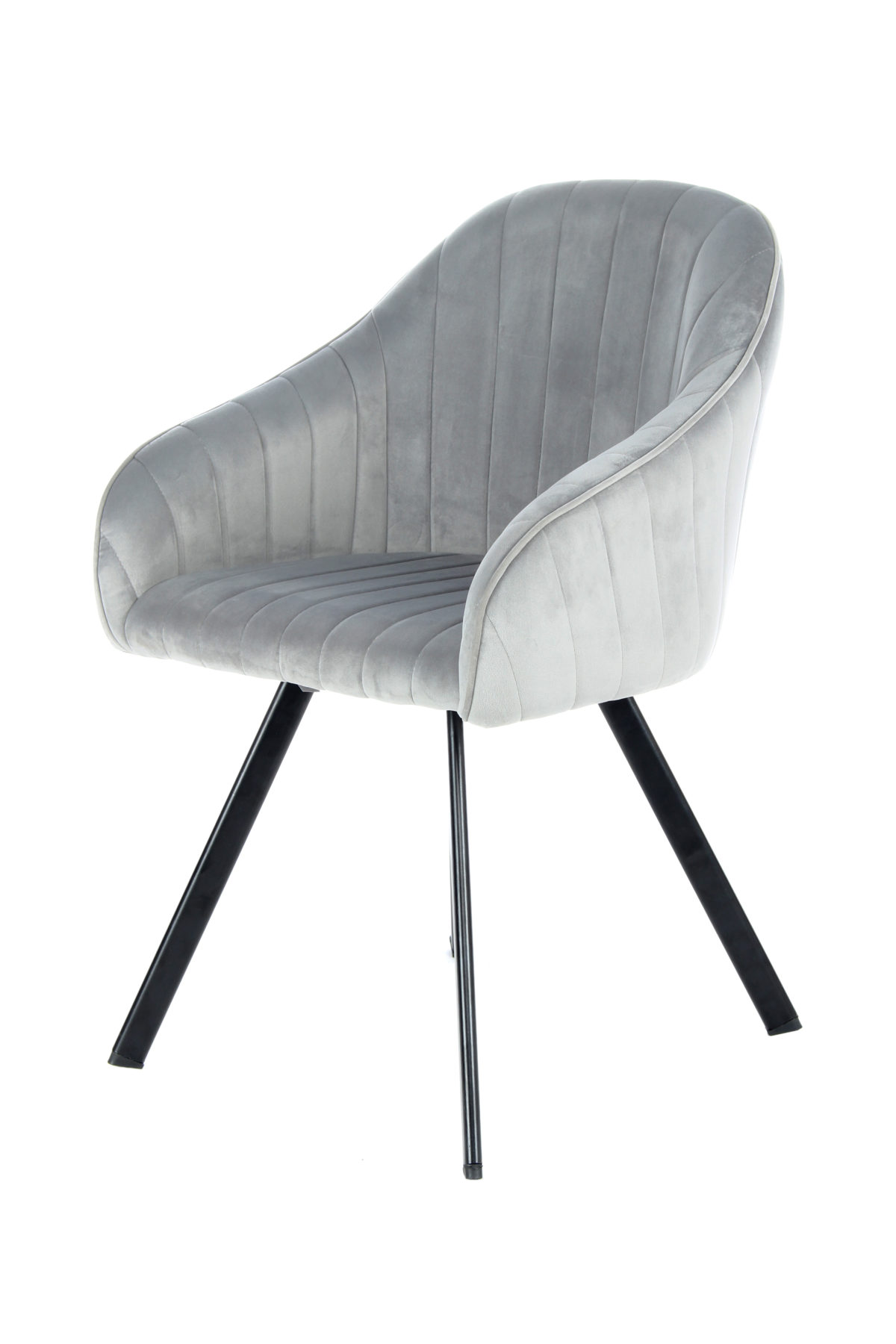 **2er-Set attraktiver Polsterstühle** Überzeugen Sie sich von dem hohen Sitzkomfort dieses Polsterstuhl-Sets. Die gepolsterte Sitzfläche und die Armlehnen machen die Stühle zu bequemen Sitzgelegenheiten, die nicht nur am Esstisch, sondern auch bei längeren Konferenzen im Büro gut geeignet sind. Auch optisch machen die Stühle eine gute Figur und können daher in jedem Wohnbereich stilvoll eingesetzt werden. Die abgerundete Form des Stuhles ist sehr modern und wird durch den eleganten, samtigen Stoffbezug ergänzt. Eine Ziersteppung verleiht dem unifarbenen Stoffbezug eine edle Note. Vervollständigt werden die Stühle durch Beine aus Metall. Bringen Sie einen Hauch von Retro-Feeling in Ihre vier Wände oder Büroräumlichkeiten und kombinieren Sie Möbel wie Schränke, Regale und Tische ganz nach Ihrem Geschmack mit dem Stuhl-Set. Dekoartikel und Wohnaccessoires werten Ihre Einrichtung zusätzlich auf. Dabei sind Materialien wie Samt und Metall besonders gut zur Kombination geeignet, da sie den Stil der Stühle aufgreifen und so ein vollkommenes Gesamtbild schaffen.