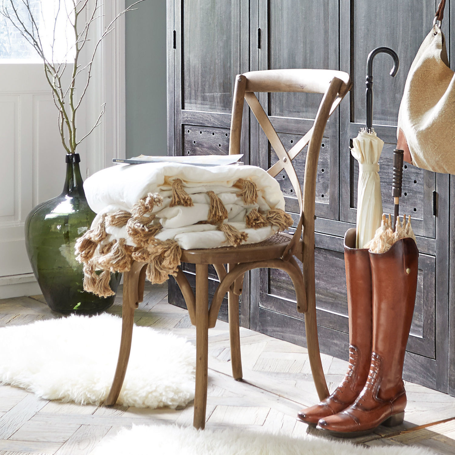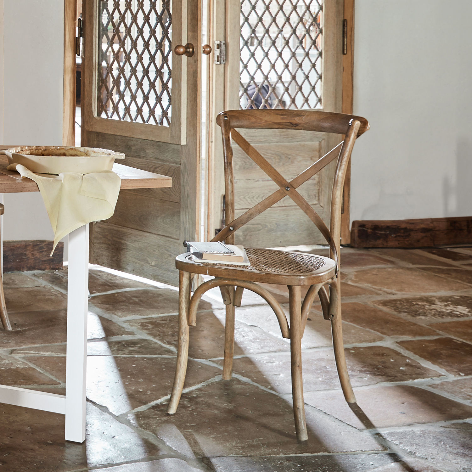 Dieser klassische Stuhl würde sich in einem französischen Bistro sehr gut machen – und bestimmt auch in Ihrem Esszimmer. Der sanfte Schwung seiner Beine setzt sich in den seitlichen Streben der Lehne fort, die nicht nur von einem quer montierten Brett, sondern auch von zwei sich kreuzenden schmalen Holzbändern verbunden werden. Ein schönes Detail ist auch der geschlossene Ring, der die Stuhlbeine miteinander verbindet. Während das komplette Gestell des Stuhls aus amerikanischer Weißeiche mit liebevoll gealterter Oberfläche hergestellt wurde, besteht die Sitzfläche aus Rattan. Diese Materialkombination hat einen ungemein wohnlichen und zugleich natürlichen Charakter. Sie erinnert zudem stark an den etwas leichteren Stil französischer Landhäuser, an eine angenehme Lebensart und genussreiche Stunden im Kreis von Freunden. Das sind gute Gründe, diesen Stuhl in der eigenen Küche, in der Diele oder im Esszimmer willkommen zu heißen – gern auch im Mix mit anderen schönen Stühlen.