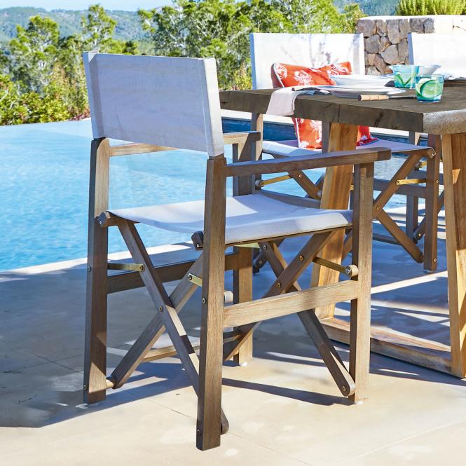Trend Stuhl im Regie-Look. Das robuste Gestell ist aus langlebigem Teakholz gefertigt. Sitzfläche und Lehne bestehen aus strapazierfähigem Olefin. Perfektes […]