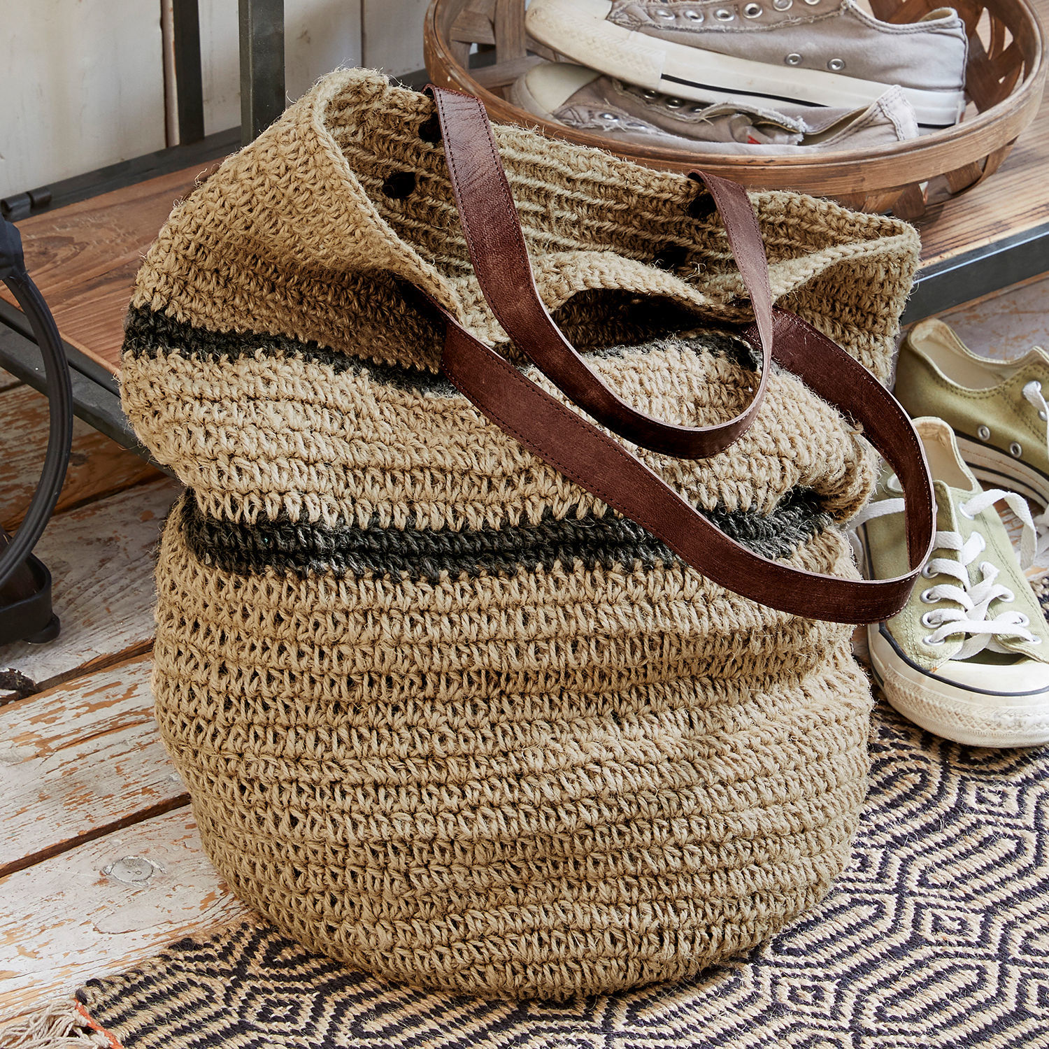 Der schicke, großzügige Shopper in modischer Beutelform begeistert alle, die es natürlich mögen. Die hochwertige Tasche besteht aus ungefütterter Jute und stabilen Henkeln aus wertvollem Ziegenleder – ein gekonnter Materialmix, der für Natur pur steht. Hierin finden all Ihre Schätze vom Stadtbummel oder dem Einkauf auf dem Markt Platz. Auch für einen Spaziergang, ein Treffen im Café mit Freunden, einige Stunden im Park oder einen Wochenendausflug ist sie ein wunderbarer Begleiter mit viel Stauraum. Das angenehm dezente Design passt sich wirklich jedem Outfit harmonisch an, ob Rock und Bluse oder lässige Jeans. Die perfekte Tasche für alle Fälle!