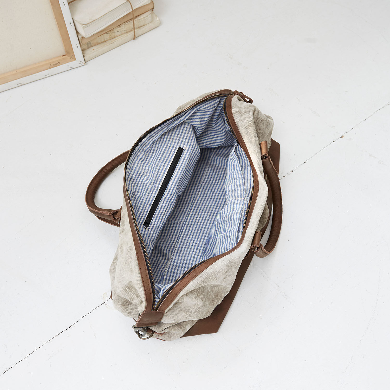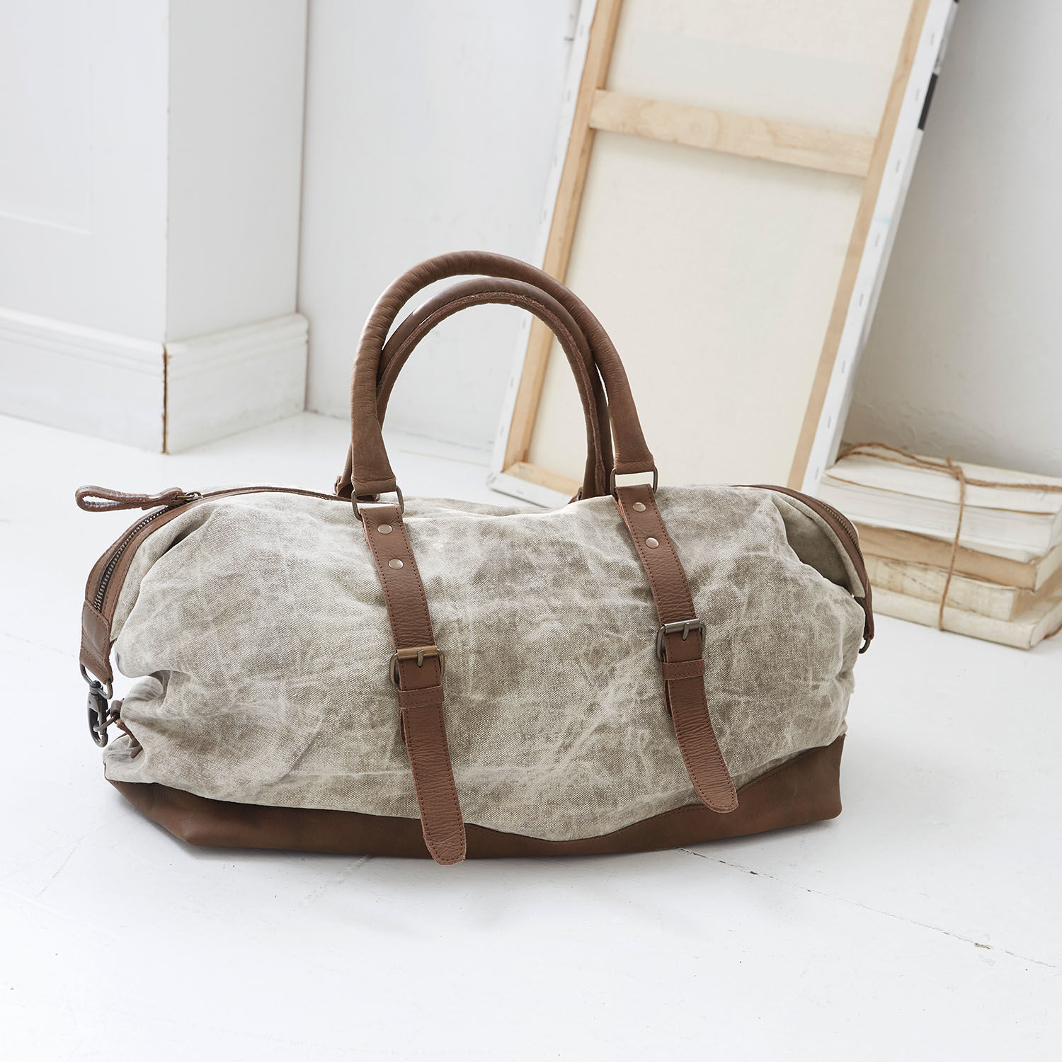Fast könnte man meinen, dass diese Tasche aus strapazierfähigem Canvas Sie schon über viele Jahre stilvoll und treu begleitet. Doch tatsächlich verdankt sie ihren lässigen Shabby-Charakter dem modischen Stonewashed-Effekt. Ergänzt mit Lederakzenten aus robustem Büffelleder fehlt es der Tasche weder an rustikalem Charme noch an modernem Chic. Oben öffnet sich das Accessoire durch einen praktischen Reißverschluss. Im Innenraum ist die Tasche mit einem gestreiften Futter ausgestattet und bietet ausreichend Platz für alles, was Sie für einen spontanen Wochenendtrip oder Ihre Freizeitaktivitäten benötigen. Mit zwei Leder-Tragegriffen ist die Tasche perfekt zu tragen. Der Bodenbereich ist ebenfalls aus Leder verarbeitet und schützt so sicher vor Schmutz und Nässe. Ein vielseitiger Begleiter für Vintage-Liebhaber – stilvoll und groß genug wird sie bestimmt das ganze Jahr über zum Einsatz kommen – ob als Weekender, als Sporttasche oder als zusätzliche Gepäcktasche für Ihre nächste geplante Urlaubsreise.