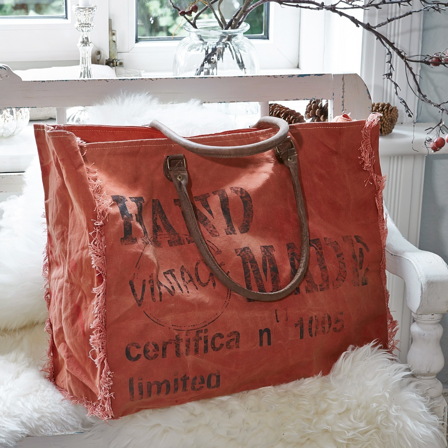Diese reizende Shopping-Tasche besteht aus robuster und hochwertiger Baumwolle, die gefärbt und mit einem schicken Vintage-Print verziert wurde. Die Lederhenkel sind ebenfalls sehr hübsch und fassen sich gut an. An ein praktisches Innenfach für Autoschlüssel und Portemonnaie wurde ebenfalls gedacht.