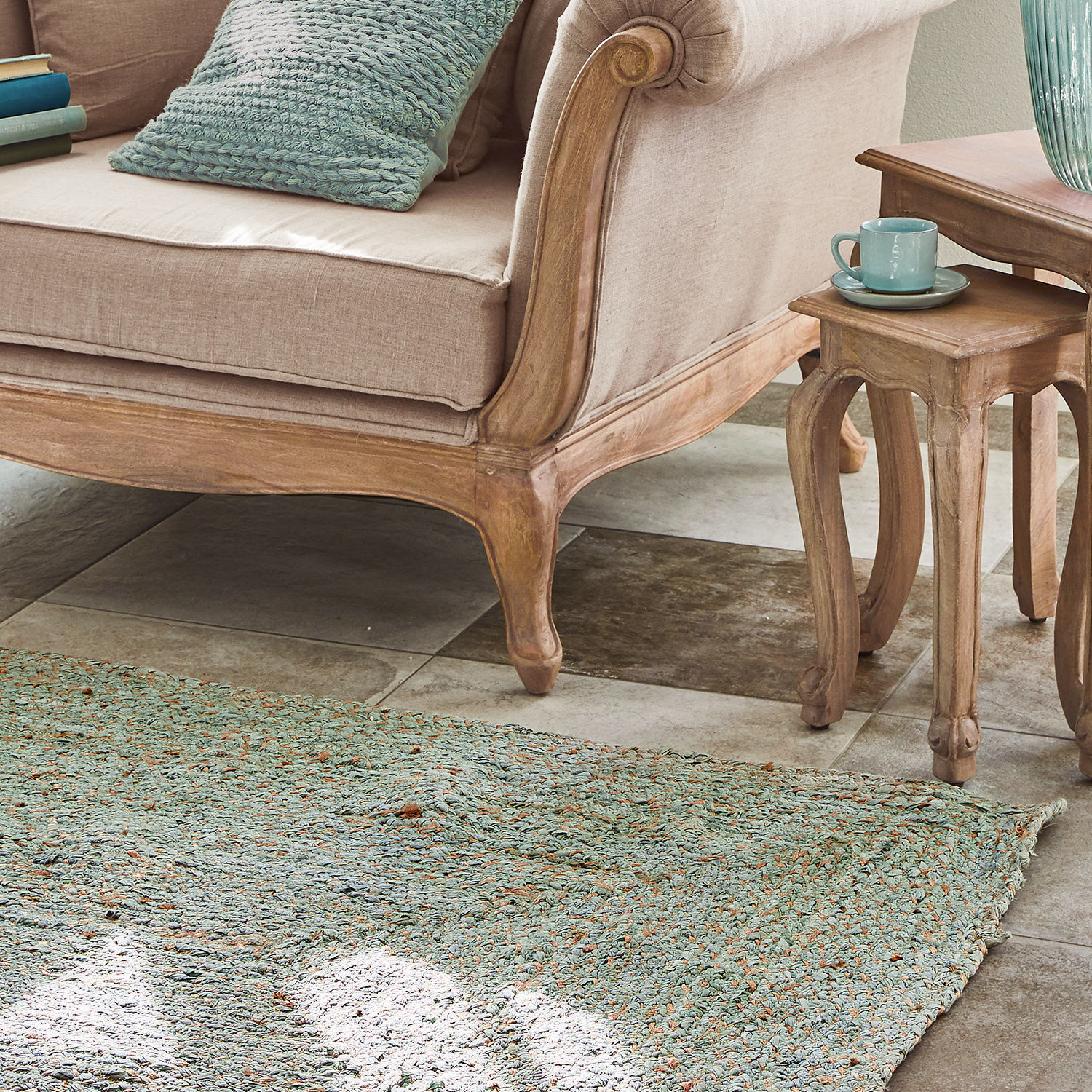 Teppiche verleihen Charakter und machen jeden Raum unverwechselbar. So ist nicht nur die Farbwahl entscheidend für das perfekte Wohngefühl, sondern auch die richtige Qualität. Mit diesem hochwertigen Webteppich bringen Sie eine einzigartige Kombination aus Natürlichkeit und Frische in Ihr Interieur. Der ausgewogene Naturgarn-Mix aus Baumwolle und Jute harmoniert aufs Schönste und schenkt dem Teppich die besondere Struktur und Optik, aber auch die hohe Strapazierfähigkeit. Das Muster entsteht vor allem durch die händisch eingeflochtene Baumwolle. Dies verleiht jedem einzelnen Teppich einen besonderen Unikat-Charakter. In neuem Trendton lässt er ein unbeschwertes Lebensgefühl aufkommen und sorgt für einen stimmungsvollen Akzent in Ihrem Schlaf- und Wohnzimmer oder in Ihrem Flur. Entdecken Sie die neue Leichtigkeit und kombinieren Sie den Teppich mit eleganten Landhaus-Möbeln und kühlen Accessoires aus Glas.