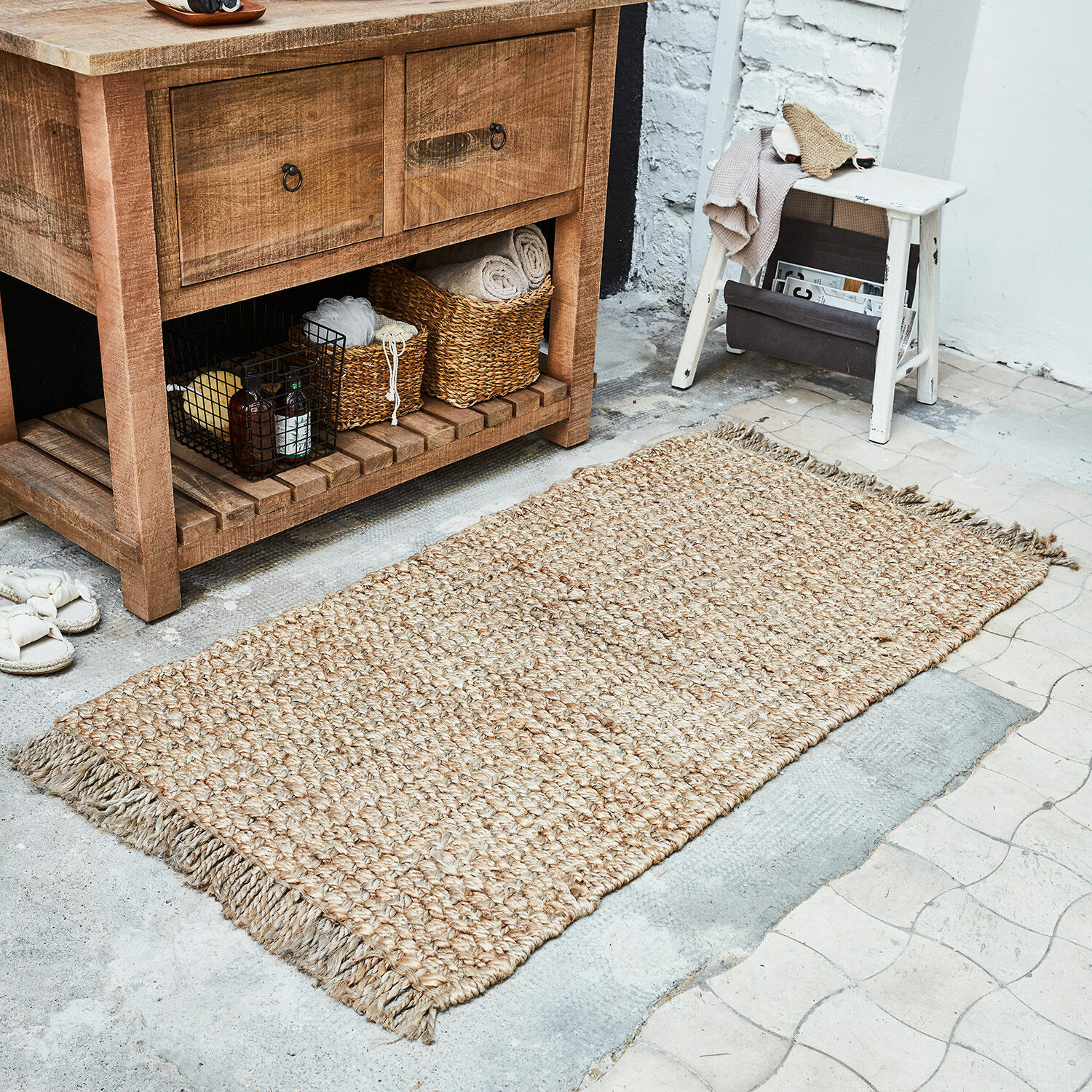 Betreten erbeten – das könnte das Motto dieses Teppichs sein. Denn hinter der ausdrucksstarken Flechtstruktur im dezenten Unifarbton verbirgt sich echte Strapazierqualität. Eine Eigenschaft, die der Teppich der Naturfaser Jute verdankt. Diese ursprünglich im Mittelmeerraum beheimatete, jetzt in den Tropen wachsende Pflanze vereint eine natürlich schöne, erdverbundene Optik mit hoher Reißfestigkeit und Langlebigkeit. Die langen, weichen und sanft schimmernden Fasern der Jutepflanze werden zu groben, sehr robusten Garnen versponnen, aus denen dann ganz traditionell am Webstuhl von Hand Teppiche wie dieser gewebt werden. Und weil es sich bei Jute um eine einjährige Pflanze und damit einen nachwachsenden Rohstoff handelt, ist der Teppich außerdem ein nachhaltiges, ökologisch wertvolles Accessoire. Im praktischen Läuferformat verbreitet der Teppich im Schlafraum eine naturnahe Atmosphäre, er ist aber auch den Anforderungen gewachsen, die in viel genutzten Durchgängen oder im Eingangsbereich des Hauses an ihn gestellt werden. Sein warmer Naturton harmoniert mit jedem Farbkonzept und ergänzt besonders schön Interieurs mit Landhaus-Anmutung. Und ganz gleich, ob er auf Stein, Holz, Laminat, Kork oder Fliesen liegen soll – der Teppich ist immer ein charaktervolles Stück Natur.