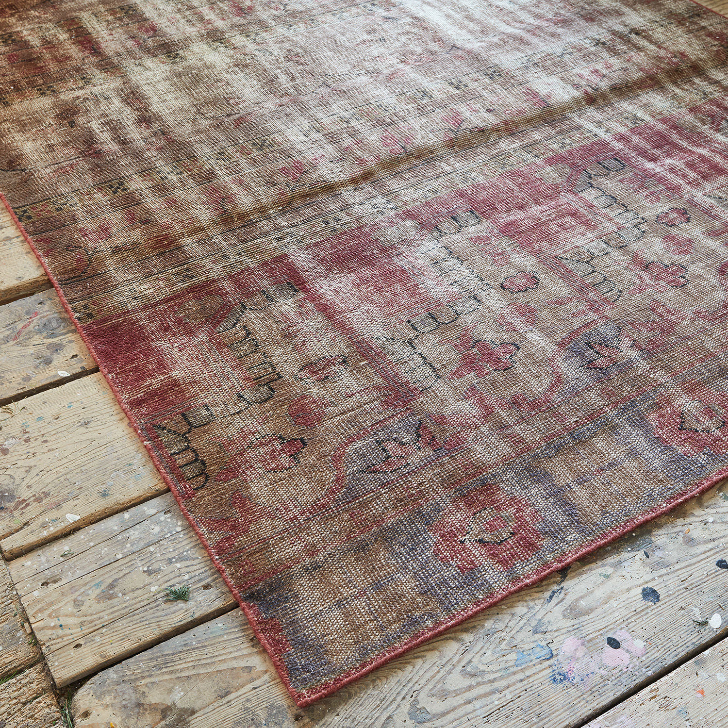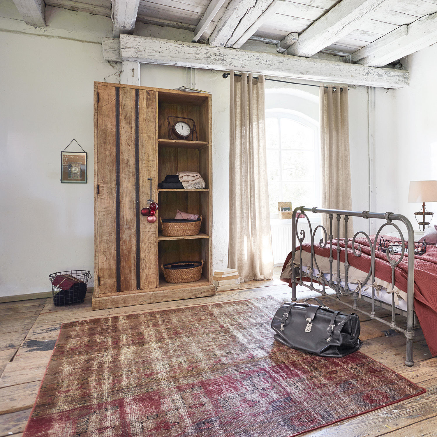 Wie das aufwendige florale Design wohl früher aussah, als dieser Teppich noch jung war? Und wie waren der repräsentative Salon oder der herrschaftliche Schlafraum wohl eingerichtet, in dem der Teppich wohlige Wärme verbreitete? Vielleicht sind es gerade diese Geheimnisse, die Möbel und Accessoires aus vergangenen Zeiten so begehrenswert für uns machen. Der liebenswerte Used-Look dieses Teppichs, der nicht nur das ehemalige Muster dezent verbirgt, sondern auch die frühere Farbintensität verblassen lässt, ist bei diesem Teppich aber nicht das Resultat vieler Jahre und Füße, die über den Teppich gegangen sind. die antike Optik ist hier der besonderen Kunstfertigkeit des Webers zu verdanken. Denn ist schon das Anfertigen perfekter Blumenmuster eine seltene Kunst, so wird das Weben eines Musters mit Shabby-Effekt nur von wenigen traditionellen Webern beherrscht. Bis zu 2 Monate kann es dauern, bis ein Meisterwerk wie dieser Teppich hier den Webstuhl verlässt, um am anderen Ende der Welt einen Raum mit seiner Persönlichkeit zu bereichern. Für die angenehm weiche, wohnlich warme Haptik des Teppichs, der gerne auch mit bloßen Füßen betreten werden möchte, ist der hochwertige Material-Mix aus Wolle und Baumwolle verantwortlich. Noch ein Tipp: Nehmen Sie die dezenten Rot-Nuancen des Teppichs in anderen Accessoires wie Decken, Kissen, Deko-Gläsern etc. wieder auf – die Wirkung wird einmalig sein!