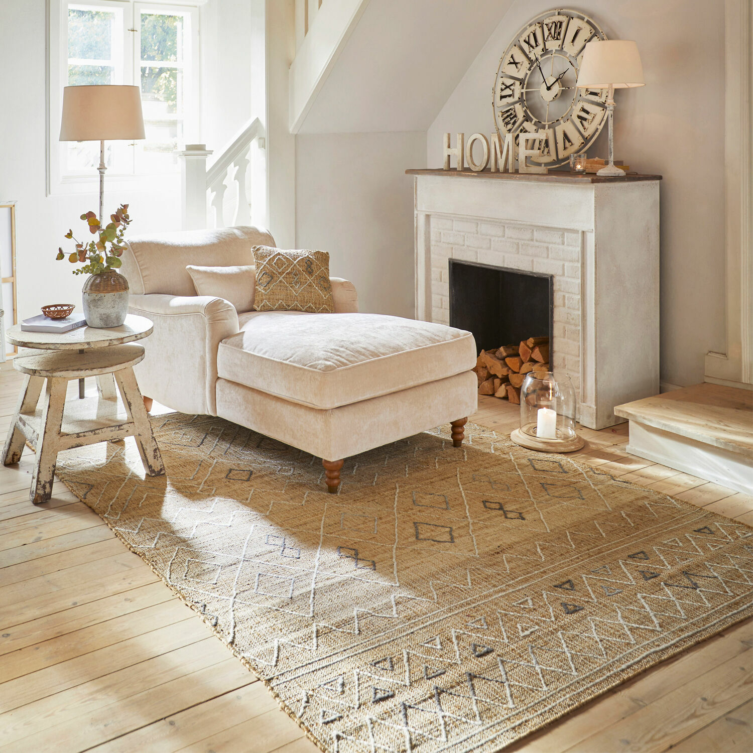 Dieser exquisite Teppich gefällt nicht nur Liebhabern des Ethno-Chic. Denn sein Design in klarlinigem Rautenspiel und dezenter Farbwahl ist einfach edel und sorgt für einen lebendigen und dennoch eleganten Akzent in Ihrem Interieur. Das Besondere: Die Rauten sind mit grober Filzwolle eingearbeitet, was dem Teppich die schöne, erhabene Struktur verleiht. Natürlicher Hanf bildet die Basis für das eher dünne Gewebe – die spannende Naturfaser zeichnet sich durch eine angenehme Haptik, aber auch besonders hohe Strapazierfähigkeit und Langlebigkeit aus. Ein äußerst dekoratives Wohntextil, das Ihren Raum mit Gemütlichkeit und Wärme bereichert. Kombiniert mit hellen Möbeln, stilvollen Lampen und Accessoires aus natürlichen Materialien entsteht ein Gesamtbild, das ausgeglichen, sanft und harmonisch wirkt. Mit der ergänzenden Kissenhülle Nr. 20347 können Sie das eindrucksvolle Design auch auf Ihre Couch bringen.