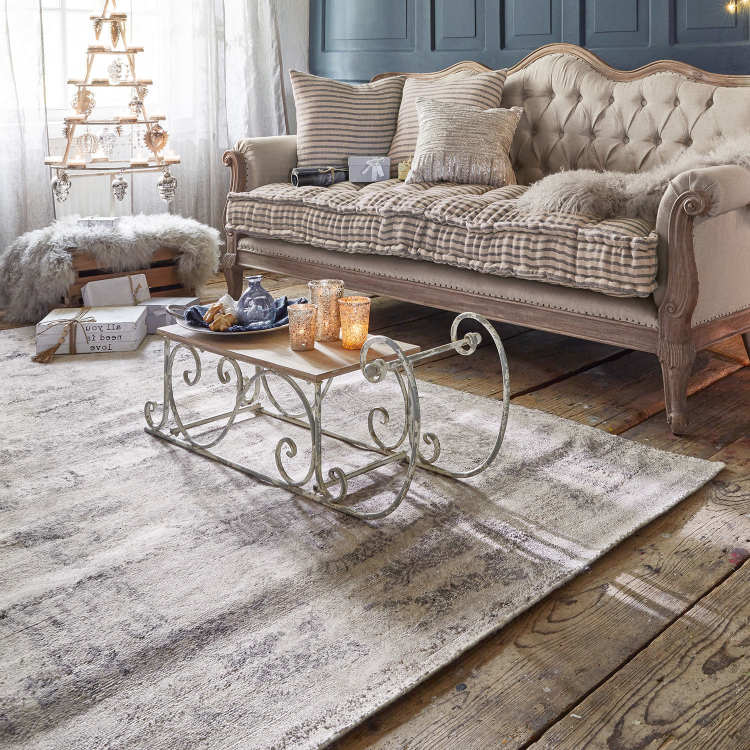 Vintage – das ist mehr als ein kurzlebiger Trend. Wer sein Herz an erlesene Schmuckstücke aus vergangenen Epochen verloren hat und sich gerne mit diesen exquisiten Objekten umgibt, demonstriert damit auch augenfällig sein Faible für Tradition und wahre Schönheit. Ein textiles Wohn-Accessoire mit nostalgischem Charme ist dieser Teppich. Mit seinem verblassten Design, dessen ursprüngliche Form kaum noch zu erkennen ist, vermittelt er das Flair eines alten Erbstücks, das seit Generationen in der Familie weitergereicht wird und von jedem mit Freude und Stolz in die Wohnungseinrichtung integriert wird. Was stets perfekt gelingt, denn mit der eleganten Farbstellung harmoniert der Teppich sowohl mit traditionellen wie auch mit modernen Interieurs. Das Besondere an diesem Teppich ist aber die Tatsache, dass der edle Used-Look nicht die Folge eines langen und ereignisreichen Lebens ist, sondern ein aufwendiges, kunsthandwerkliches Meisterstück. In einem ersten Arbeitsgang wurde der Teppich ganz in traditioneller Manier auf einem Webstuhl gefertigt und anschließend im angesagten Vintage-Stil bedruckt. Doch der Teppich veredelt nicht nur Ihren Einrichtungsstil, er verwöhnt Sie auch mit seiner Material-Kombi aus Viskose und Baumwolle. Vor allem die Viskose auf der Oberfläche fühlt sich angenehm weich an, ist aber zugleich wärmedämmend und pflegeleicht.