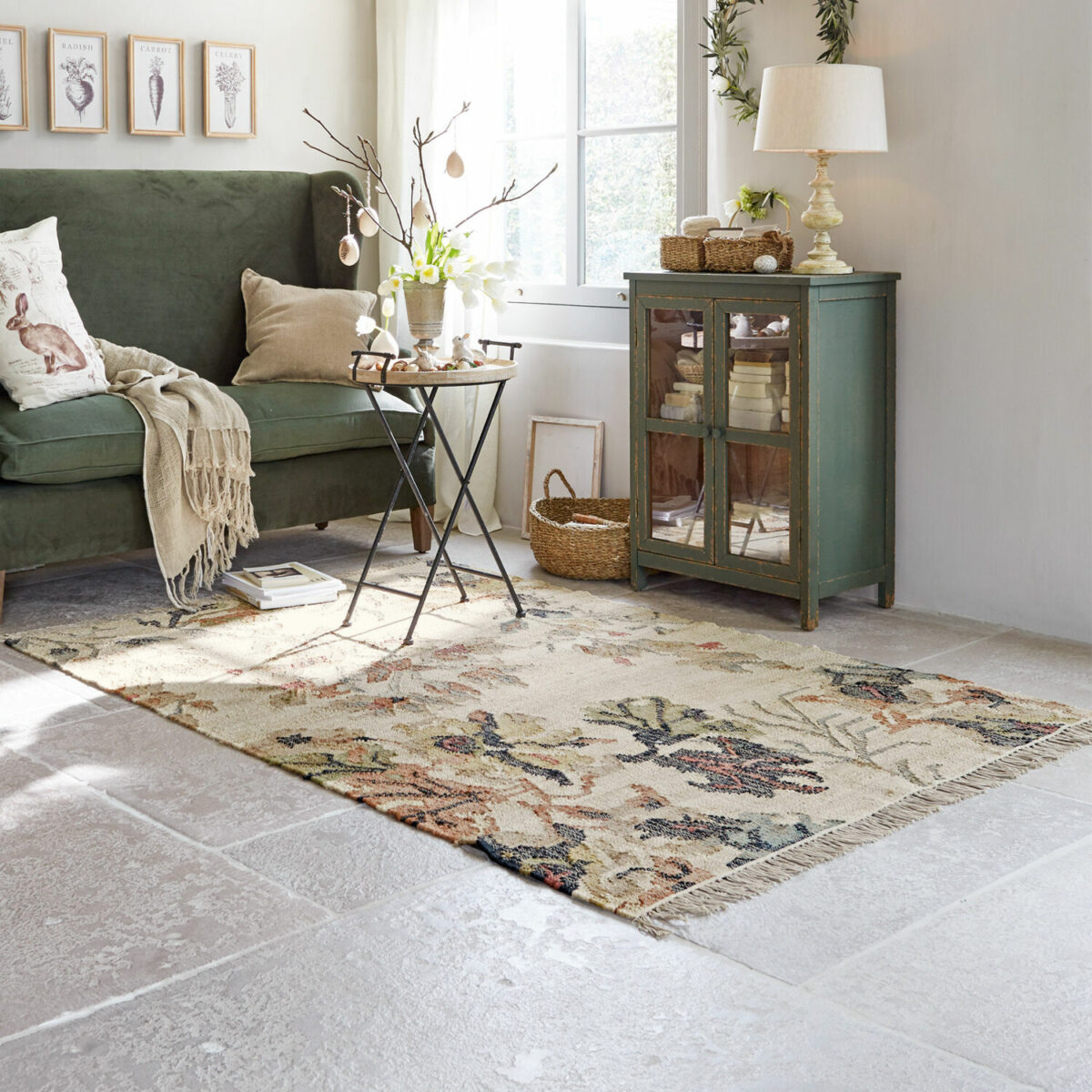 Mit diesem Teppich wird ein wunderbar naturverbundenes Flair in Ihrem Zuhause einziehen, denn er ist ein reines Naturprodukt. Die Hauptrolle spielt dabei eindeutig die raue, relativ grobe Jutefaser, die seit einigen Jahren unsere Wohn-Interieurs erobert und sich vor allem dort beliebt macht, wo wir mehr Wert auf eine dauerhafte Strapazierfähigkeit legen als auf eine kuschelig weiche Haptik. Der Baumwollanteil sorgt für eine wohnliche Note, ohne aber die Alltagstauglichkeit des Bodenbelags zu mindern. Deshalb wird sich der Teppich völlig unbeeindruckt davon zeigen, wenn tagtäglich und jahrelang große und kleine Füße auf ihm herumtrampeln, er verwöhnt Sie weiterhin mit einer hohen Trittelastizität, ist schall- und wärmedämmend und sogar klimaregulierend. Das Beste aber: Der Teppich präsentiert sich nicht im üblichen, unifarbenen Naturton, sondern es wurden opulente Blumenornamente eingewebt, wodurch er anderen Webteppichen echte Konkurrenz macht. Und schließlich ist er auch in puncto Nachhaltigkeit vielen anderen Bodenbelägen überlegen, denn bei Jute und Baumwolle handelt es sich um nachwachsende Rohstoffe, die ökologisch wertvoll sind.